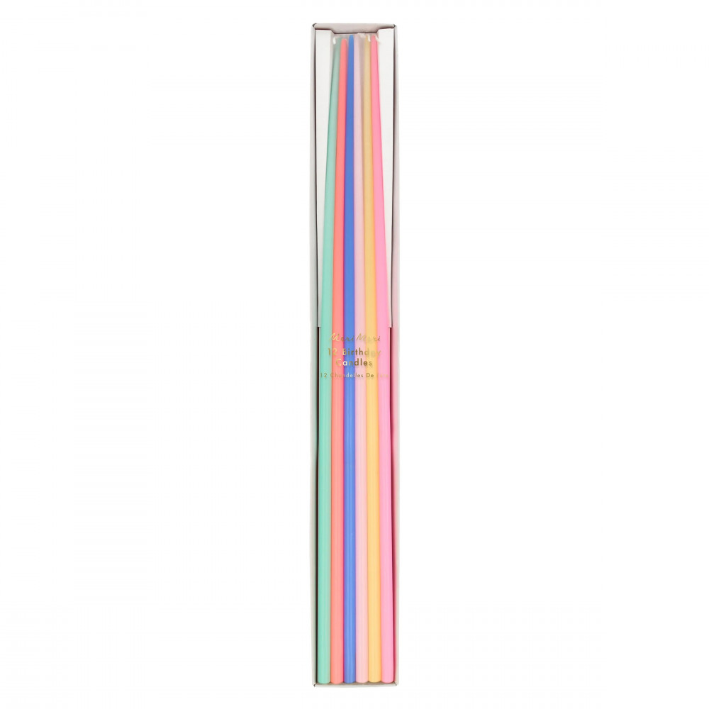 Instantly add a touch of color and fun to celebratory cakes with these stylish tapered candles. They are super tall to give a statement effect.
