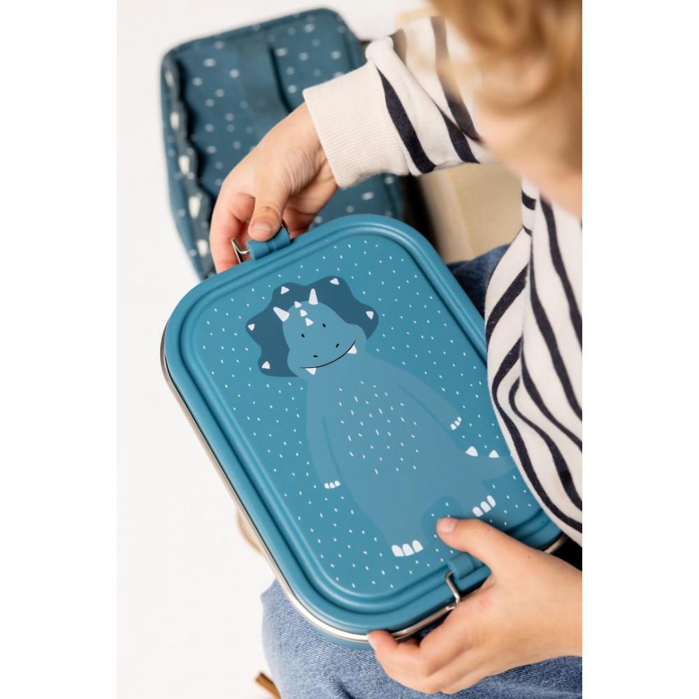 Have a great lunch with our animal friends! This durable lunch box nicely matches our range of backpacks and bottles. It comes in the same range of beautiful colours and features our fun animal friends on the lid. Kids can operate this lunch box by themselves, since it is very easy to open and close. The small lunch box easily fits 4 delicious slices of bread. The large lunch box has a fixed divider, so your little one can enjoy a healthy snack on the side. This durable lunch box is made entirely of stainless steel. This sturdy material does not contain any harmful chemicals and is LFGB proof. Stainless steel is the ideal material for food storage as it does not absorb any colour, flavour or odour. Dimensions (LxWxH) 20x15x6
