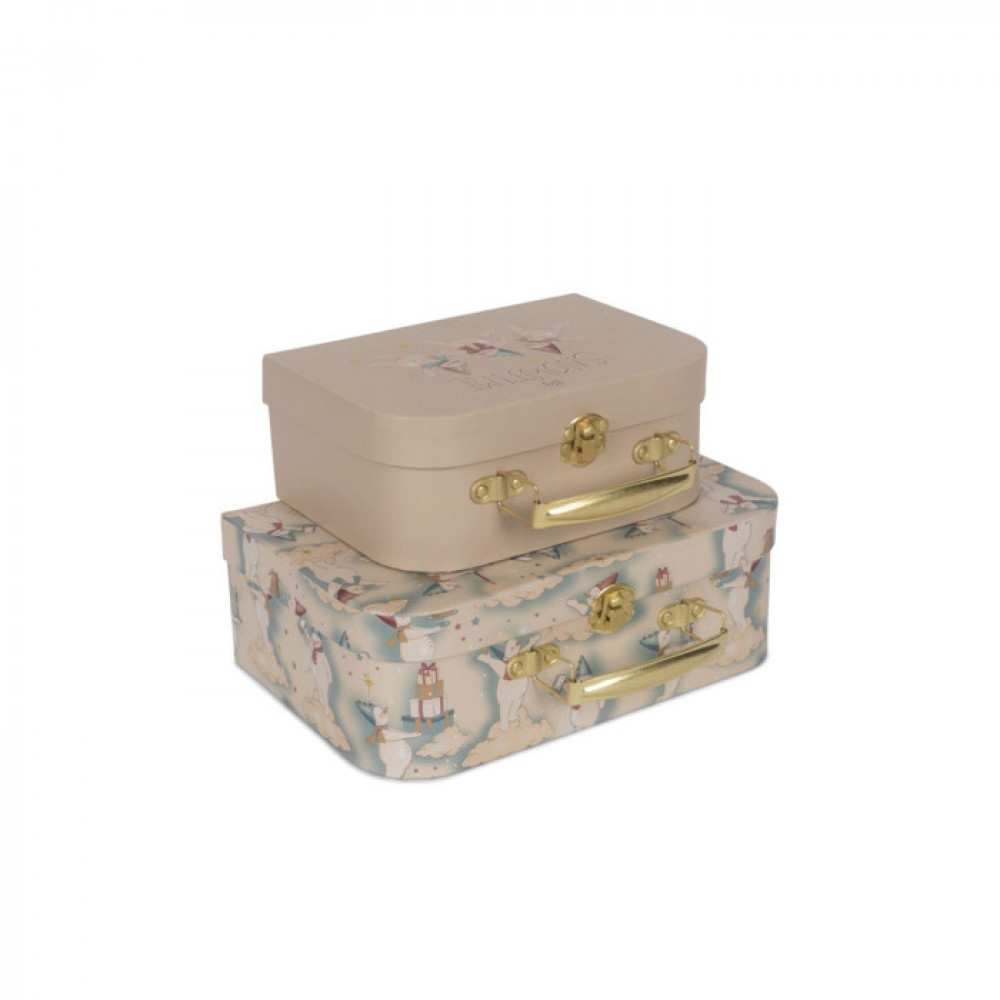These suitcases are ideal for storing small treasures, artwork or favorite toys. Place them on a shelf or table to add a quirky and colorful touch to any room. Combine with other decorative elements from Konges Sløjd to create a cohesive and imaginative play area. With these suitcases, kids can take their little adventures anywhere - from the living room to the grandparents' house. Specifications: Large suitcase: H17 x W8.5 x L25.5 cm, Small suitcase: H14 x B7 cm x L20 cm.