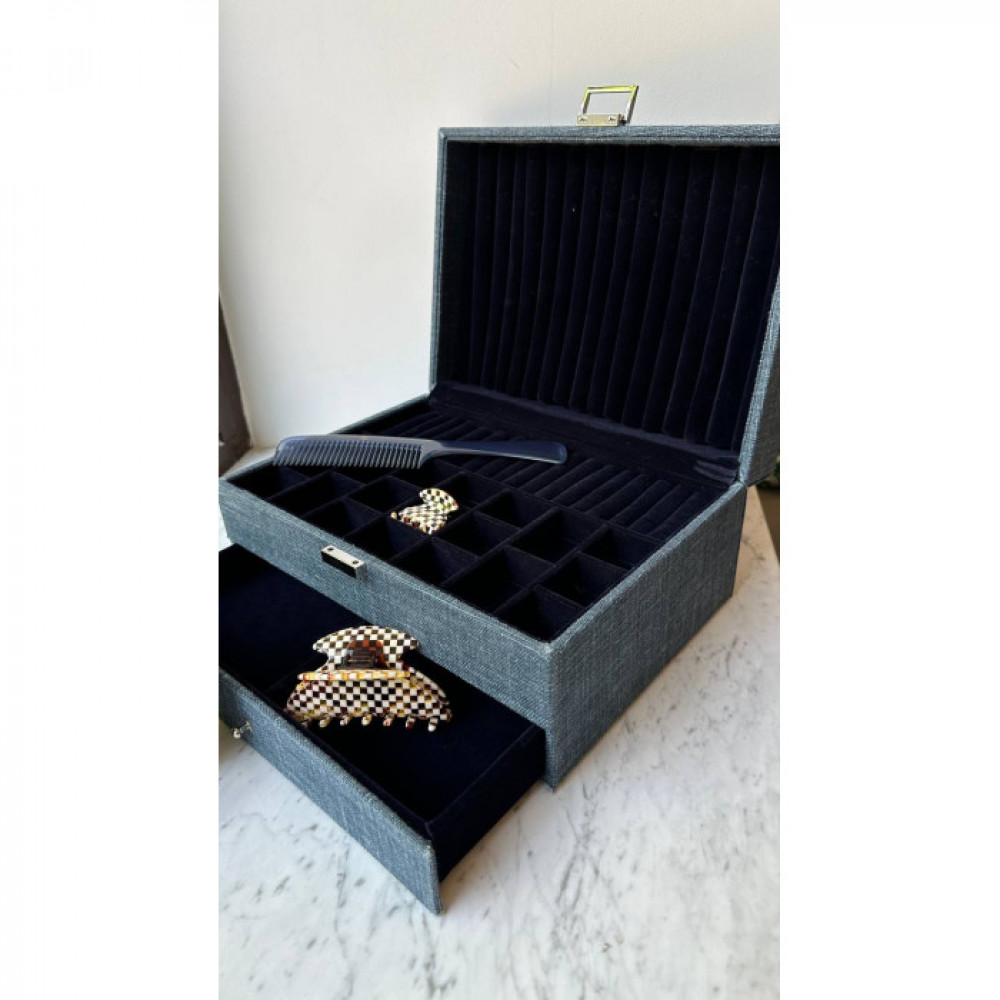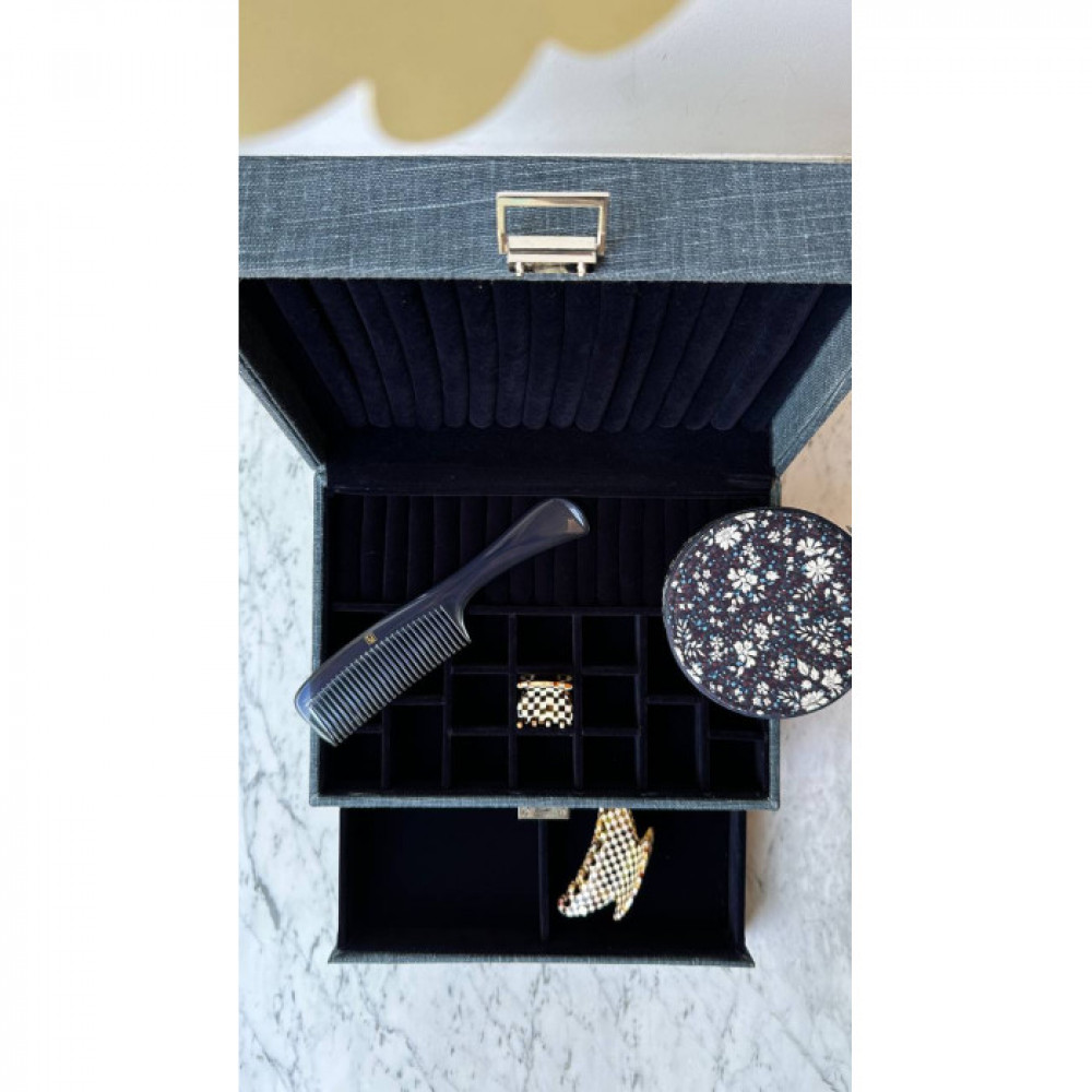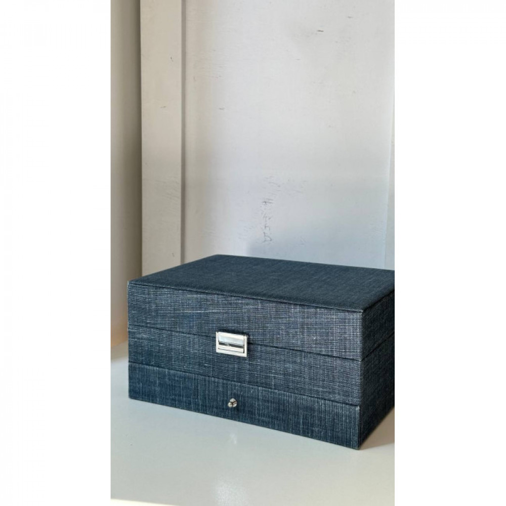 Jewelery Box Square Belgian Linen Blue. Belgian linen. W 28 x H 11,5 x D 20 cm