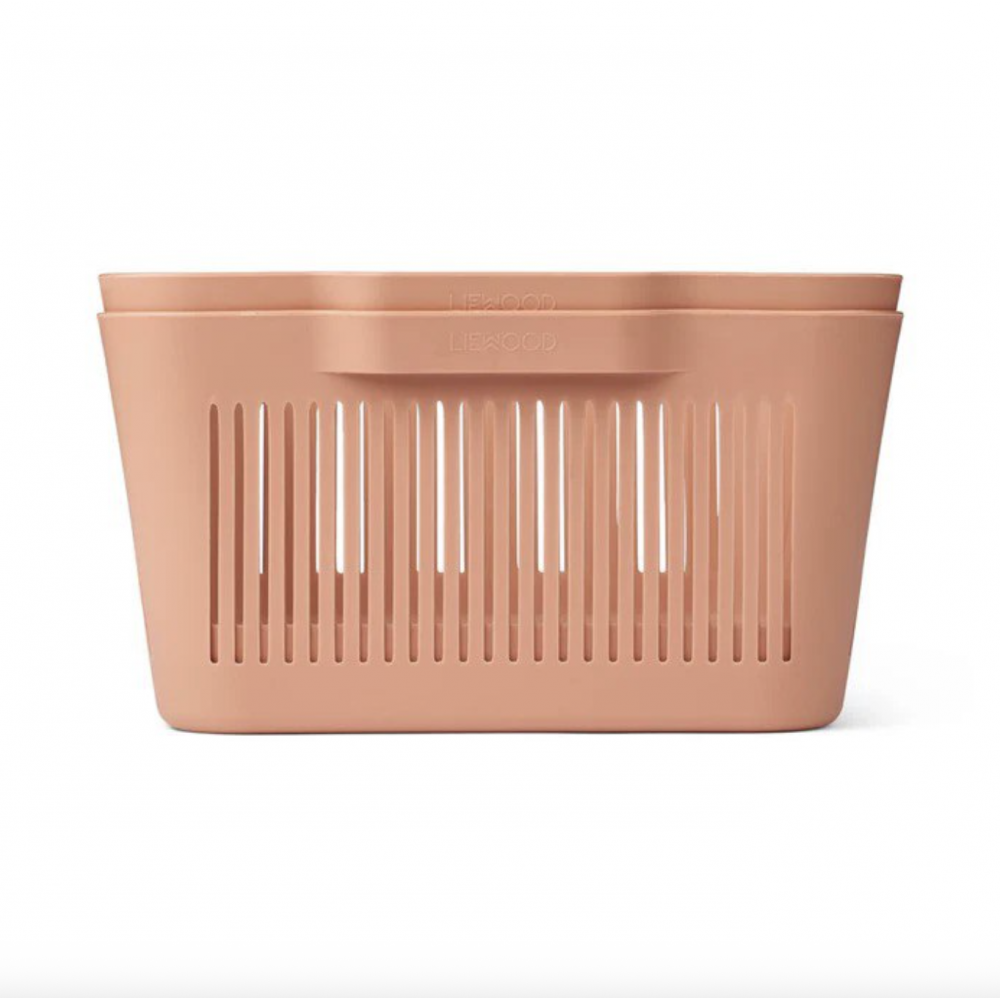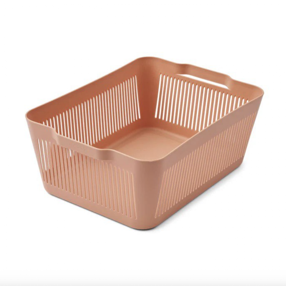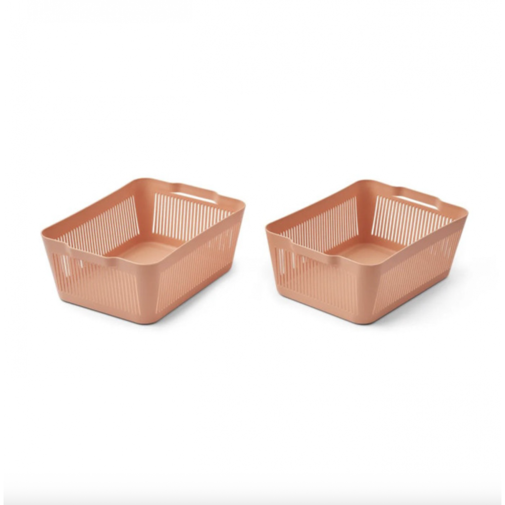 A new addition to our storage selection, the versatile Makeeva baskets are the perfect solution for open and accessable storage. Stackable when empty and easy to fit into cuppoards if wishing to stove away. Perfect for clothes, toys and much more, this simplistic and perforated design has handles and is easy to move around in your home for both little and bigger family members. 2-pack Dimensions: Height (cm) 14.5, Width (cm) 27.5, Length (cm) 39.5