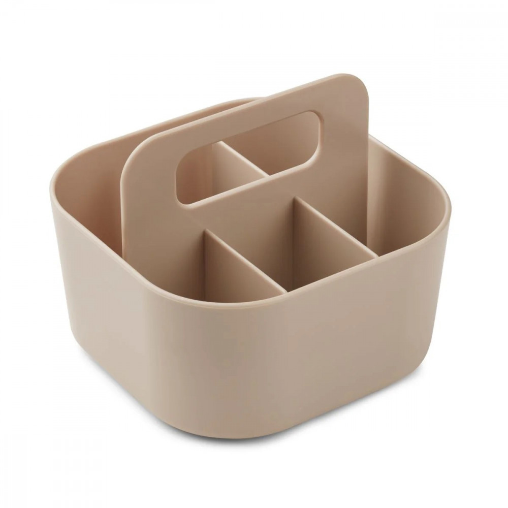 Tackle messy surfaces with the small MAY storage caddy, ideal for any children’s room, bathroom, or nursery. The divided organiser is versatile and made from long-lasting materials that will keep a clean look. Small storage organiser with 6 compartments Made from durable, 60% recycled ABS Lightweight and with a cutout handle that is easy for children to carry around Ideal for the changing table or colouring pens and other creative bits Practical and pretty Height (cm) 13.5, Length (cm) 17, Width (cm) 17