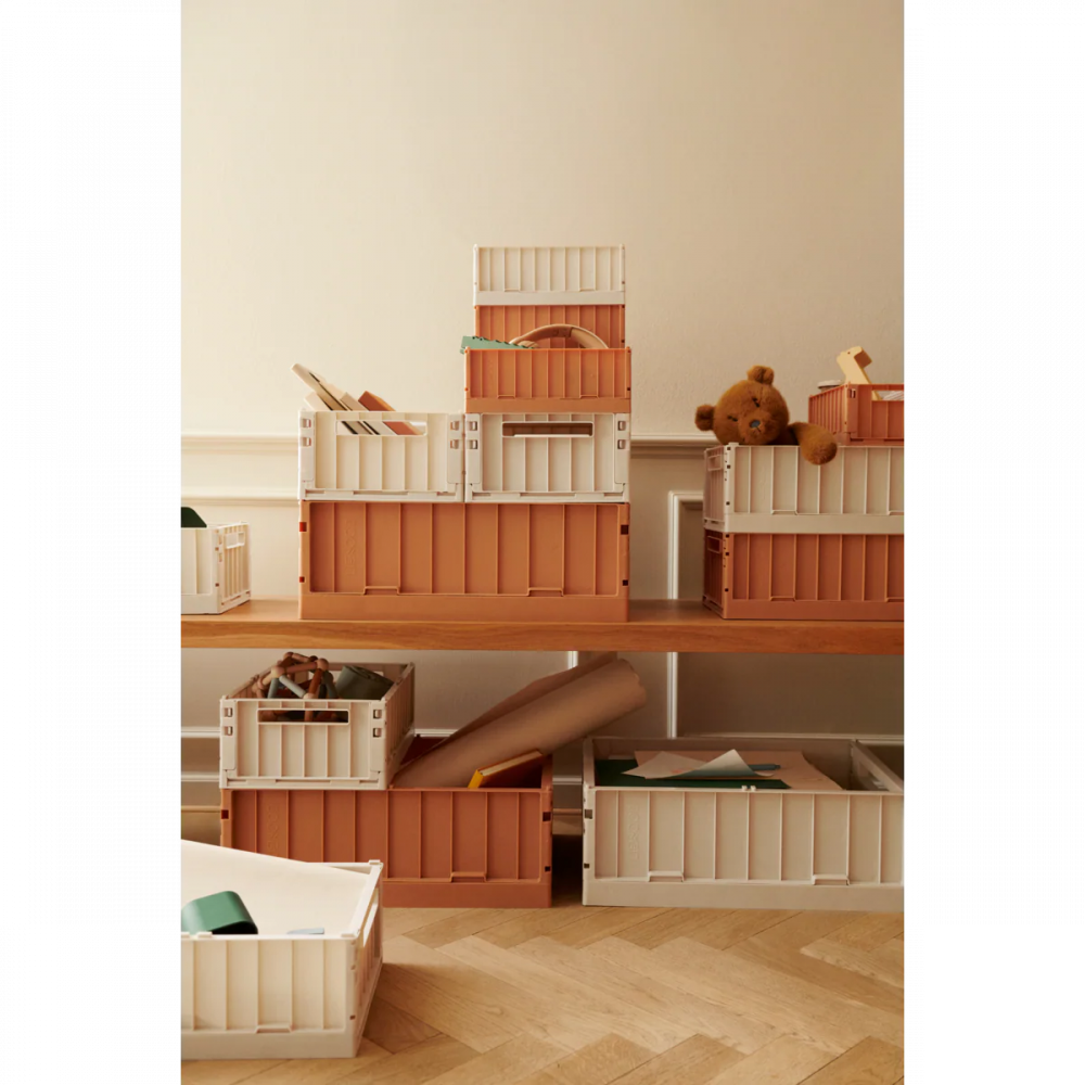 A true storage superhero, the versatile Weston storage boxes are both practical and pretty. Available in playful colours, the foldable and stackable Westons help you stay organised throughout your home. Large storage boxes available in playful colours Made from durable, lightweight, and 60% recycled PP Ideal for the children's room or the rest of your home Stackable and foldable with cutout handles Delivered flat-packed Heigth (cm) 19.5, Length(cm) 50, Width (cm) 36, Volume (l) 20