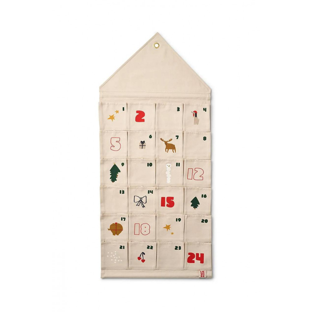 Advent calendar from the Liewood collection. The model is made of cotton material. - Organic cotton is grown without the use of harmful chemicals, chemical pesticides or artificial fertilizers. - Dimensions: 100 x 50 cm.