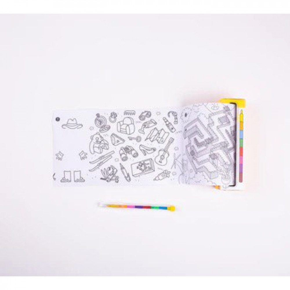The travelers favorite coloring game to slip in every bag and take anywhere: in trains, retaurants, or planes. Travel the world with this clever 3 ft long pocket game, filled with clues, activities and coloring + 1 multicolor crayon. The rules are translated into 6 languages, and coloring pages can be torn along the dotted lines to make sharing and storing easier!