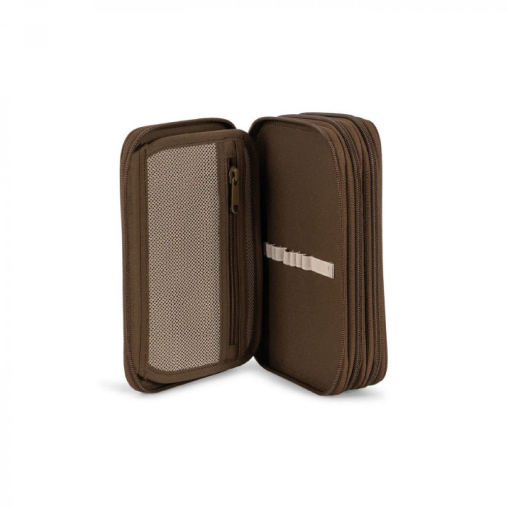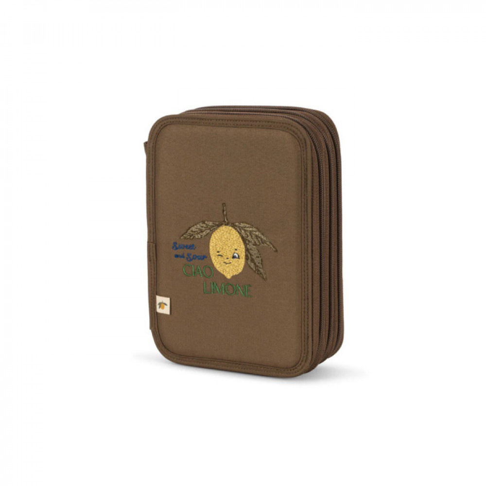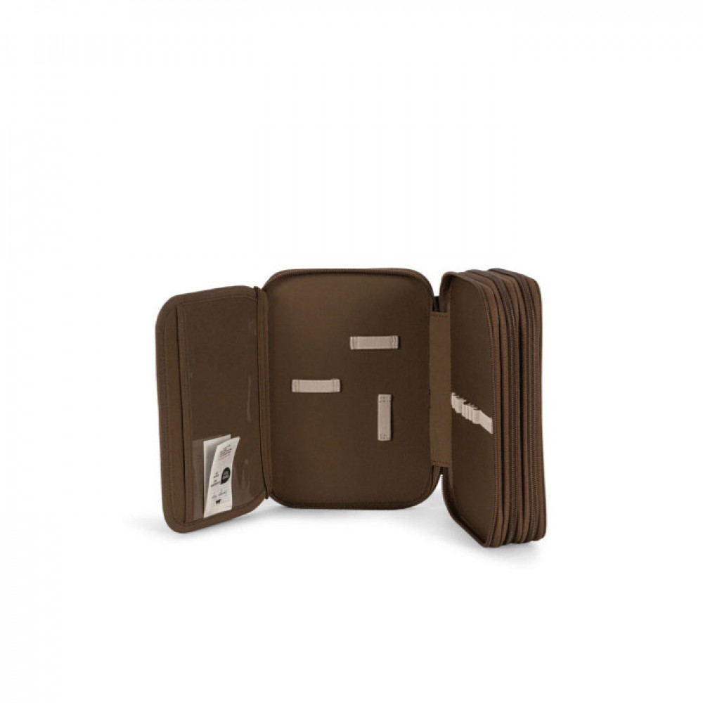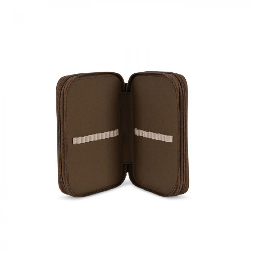 Classic pencil case with three separate compartments that can hold everything from pencils to markers, erasers and rulers. Features one extra inside zipper pocket. H: 32 cm x W: 6 cm x L: 16 cm