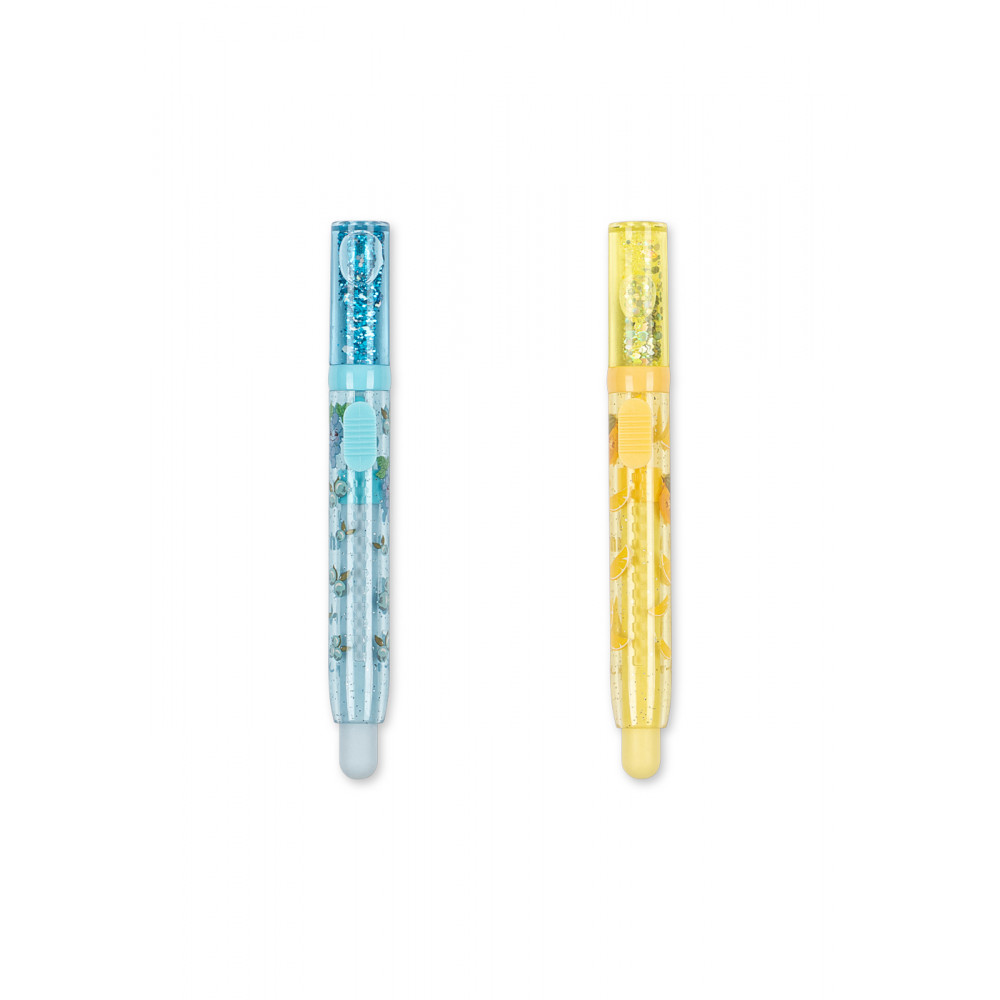 Fruity and fresh set of two scented erasers that make school work and other tasks a little bit more fun. Designed with a simple push-up effect that is easy to use. Suitable from 4y+