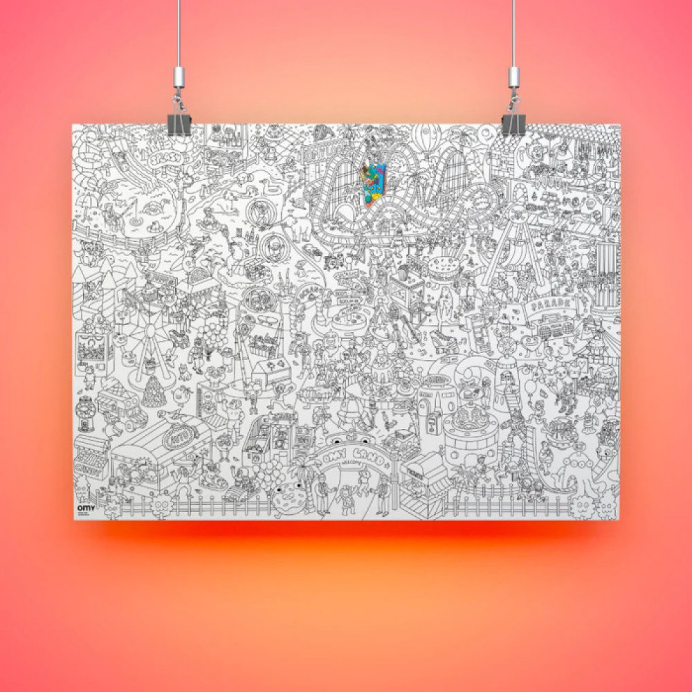 The Ferris wheel, bumper cars, roller coasters, cotton candy and candy apples...A line full of humor and a multitude of details, a real graphic journey to share between all generations.A limitless artistic space for coloring alone or with others, to unfold on the ground, to hang on the wall or to use as a tablecloth.Easy to frame format. From 3 years old. Content: 1 poster Unfolded format: 70 x 100 cm Composition: superior quality extra-white paper 120 gr Instructions for use: bring 2 to 3 boxes of OMY markers to complete your entire poster! Designed and manufactured in France by OMY