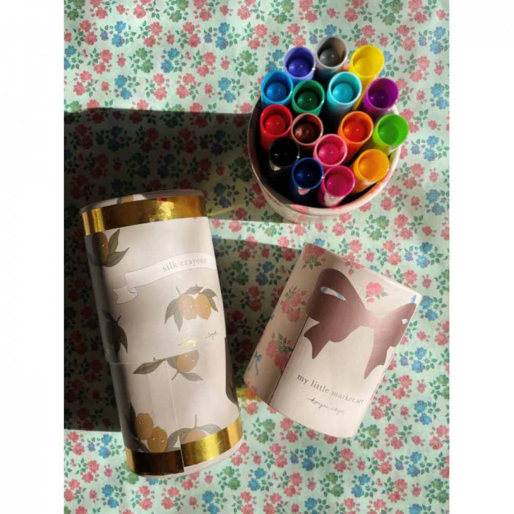 This set includes 16 different water based markers. The markers are stored in a tube so cute, you simply can't help but put it on your desk or table as a decorative holder for your creative markers and pencils.