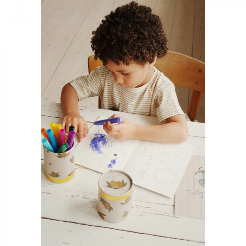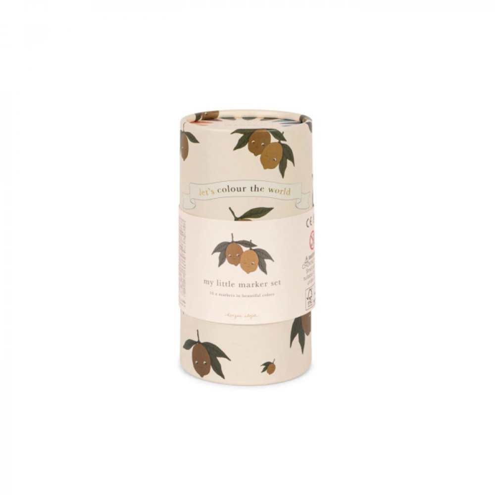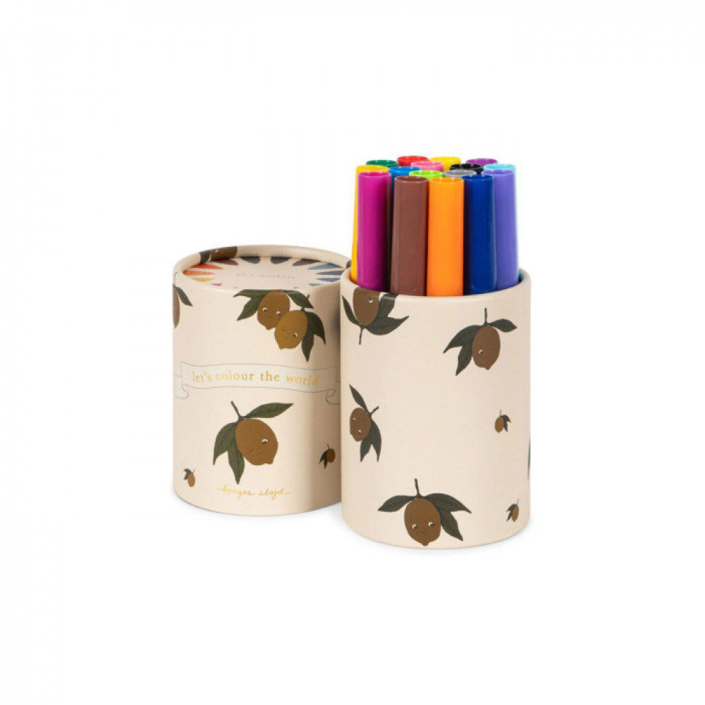 This set includes 16 different water based markers. The markers are stored in a tube so cute, you simply can't help but put it on your desk or table as a decorative holder for your creative markers and pencils.