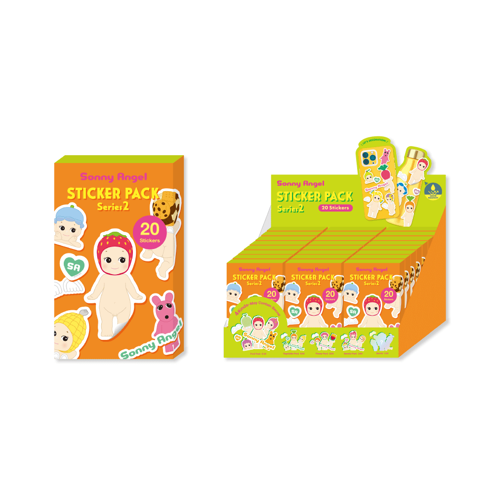 With our new die-cut stickers to commemorate Sonny Angel’s 20th anniversary, Sonny Angel can watch over you and make you smile anytime, anywhere! The second series features over 100 designs of our most beloved vegetable and fruits—and secrets! Decorate the world around you with stickers and spend more time feeling closer to Sonny Angel! You can also decorate your notebooks and stationery with Sonny Angel stickers to make every day even more fun! Add them to your planner or use an adorable sticker accent to make letters and gifts for your loved ones even cuter! There are 4 theme types + 1 Secret for a total of 5 theme types. Each individual pack contains 20 die-cut stickers, and each assortment box contains 24 individual packs. Just like with our minifigures, half the fun is finding out which Sonny Angel you will meet when you open the box!