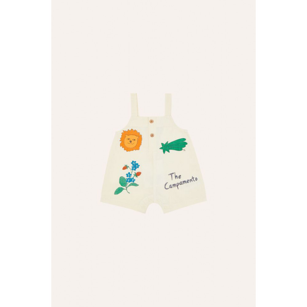 Ecru dungaree featuring different elements printed all over it to colorful any summer outfit. Comfortable and fresh for completing the baby’s wardrob