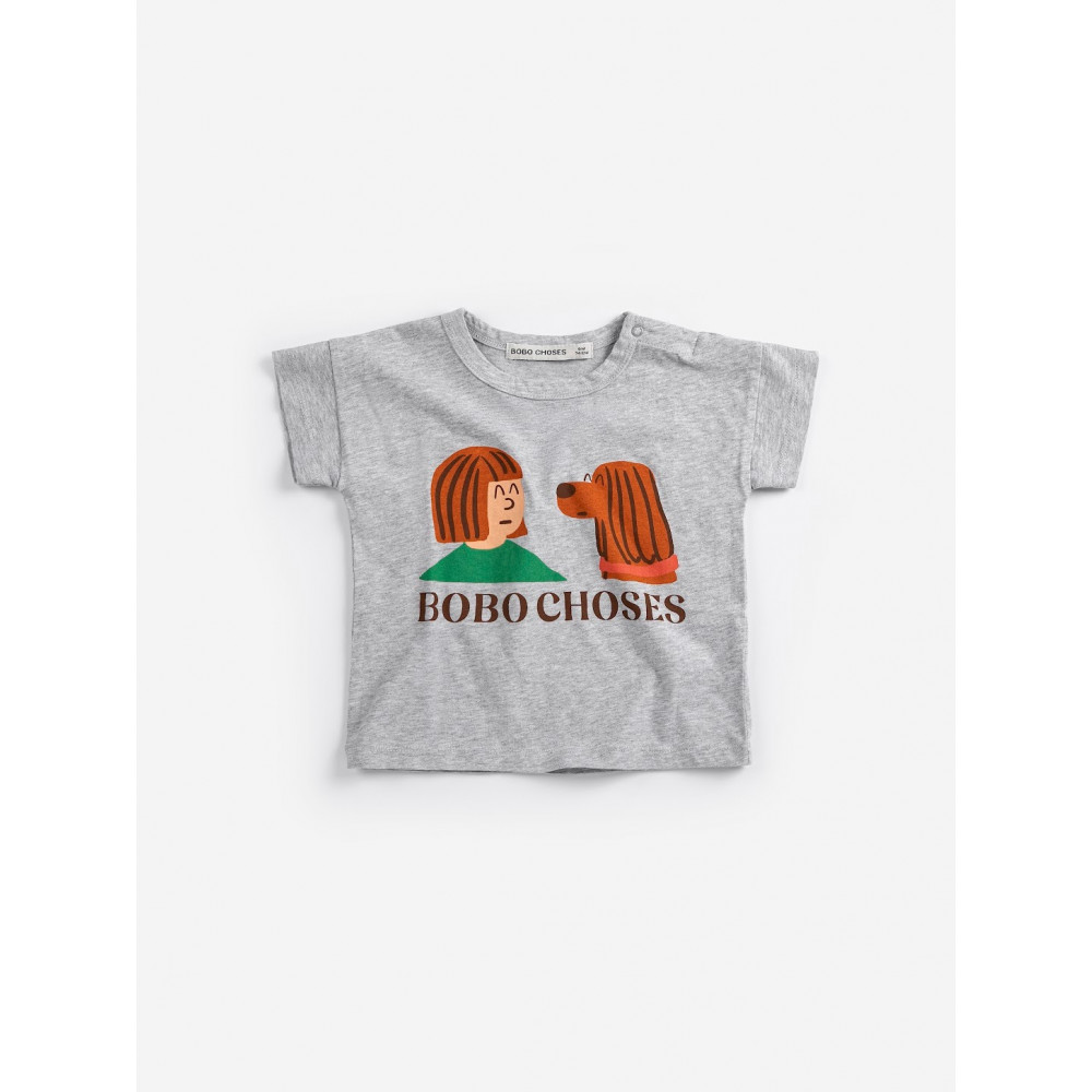 Heather grey t-shirt. Designed with short sleeves, dropped shoulder, shoulder snap fastening, loose fit and round neck. Made in Portugal.