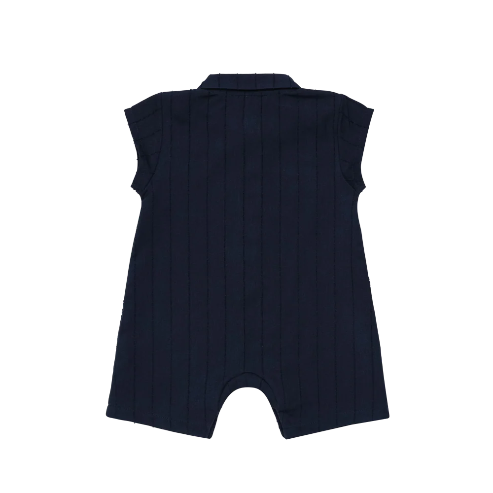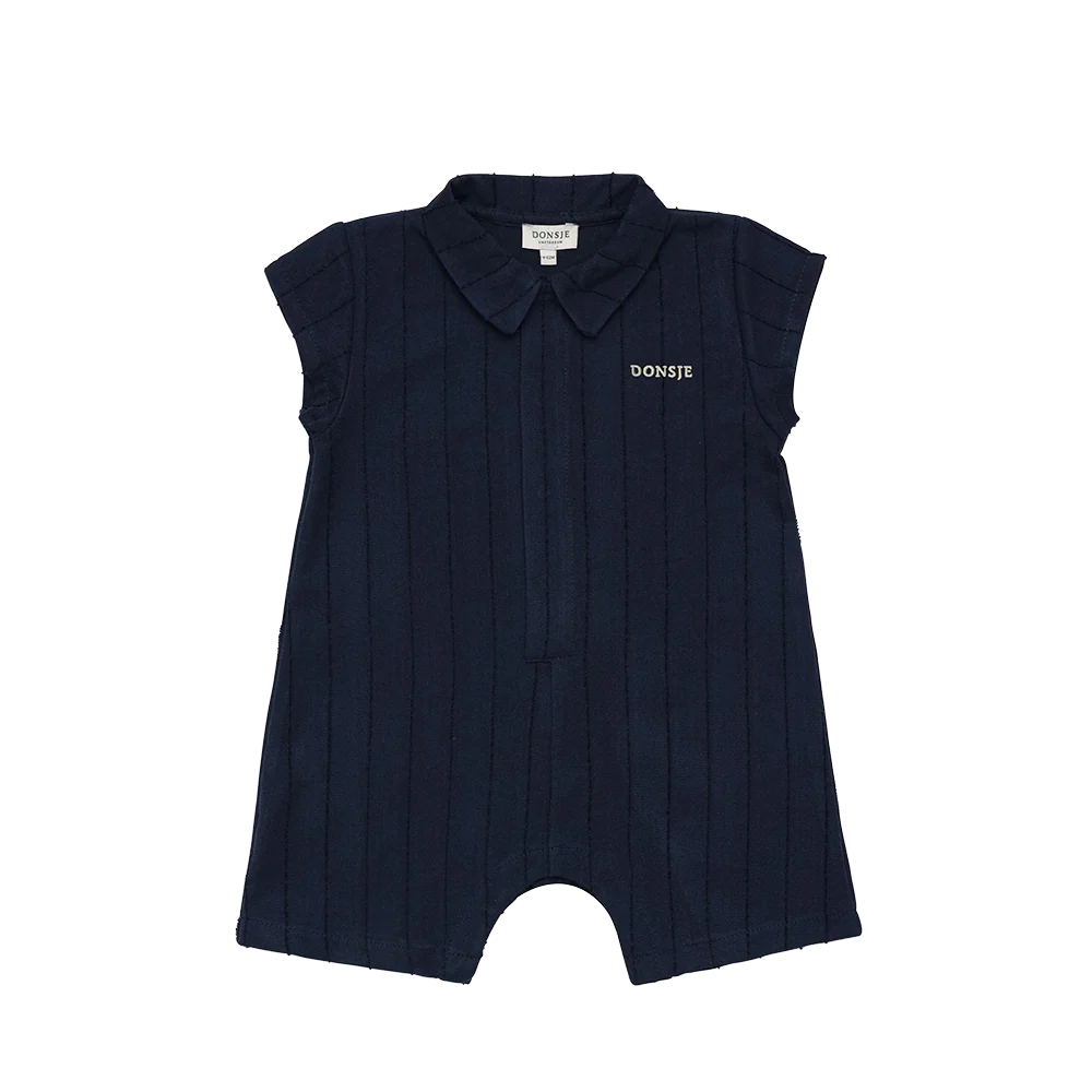 Effortlessly refined and playfully understated, the Kajani Playsuit is a charming everyday essential for your little one. Crafted from soft, breathable fabric with a subtle pinstripe texture, it features a smart collar and hidden button placket for a tailored finish. The embroidered Donsje logo adds a signature touch of character, while the short sleeves and comfortable fit make it ideal for warm-weather adventures.