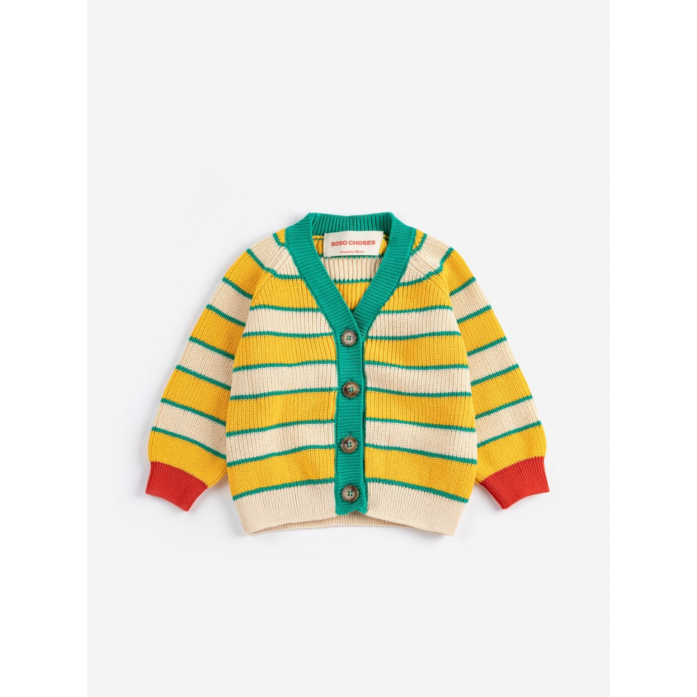 Multicolor cardigan. Designed with v-neck, long sleeves, raglan sleeves, dropped shoulder, front button fastening, ribbed cuffs, embroidery, texture knit, loose fit and ribbed bottom. Made in Portugal.