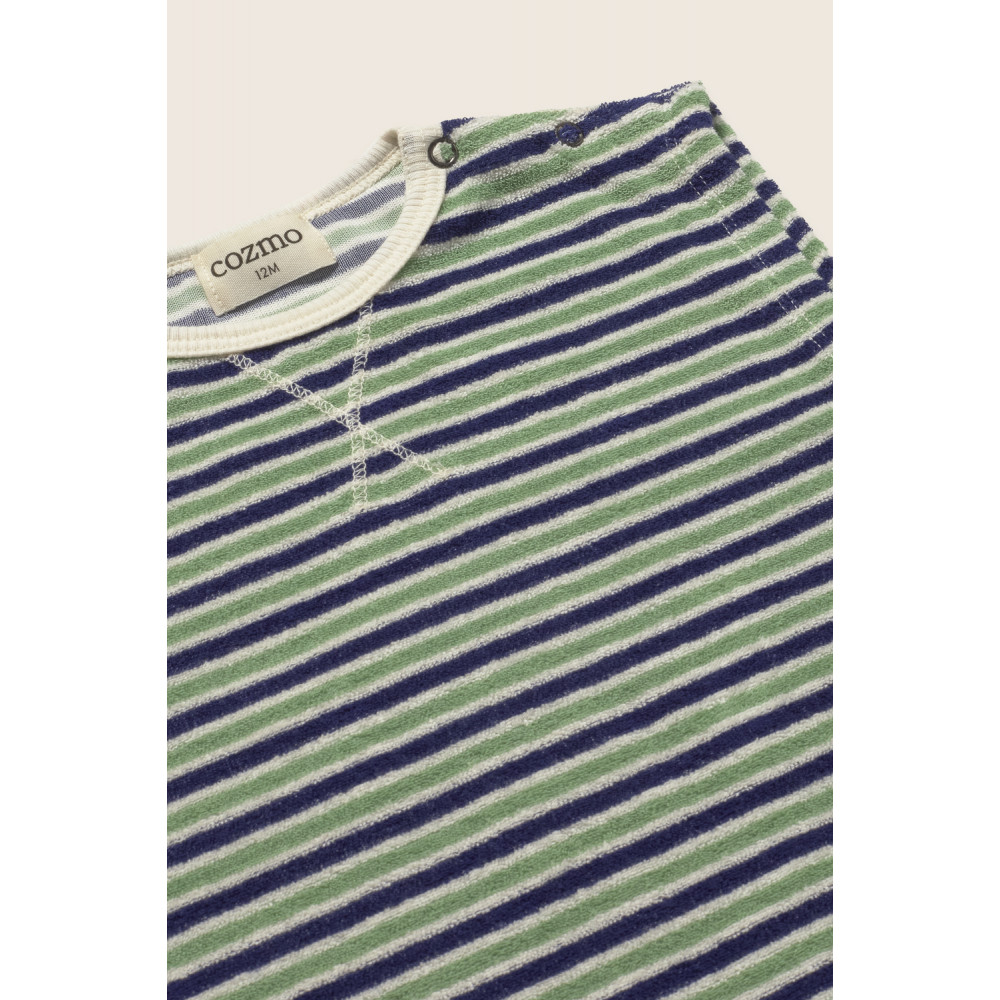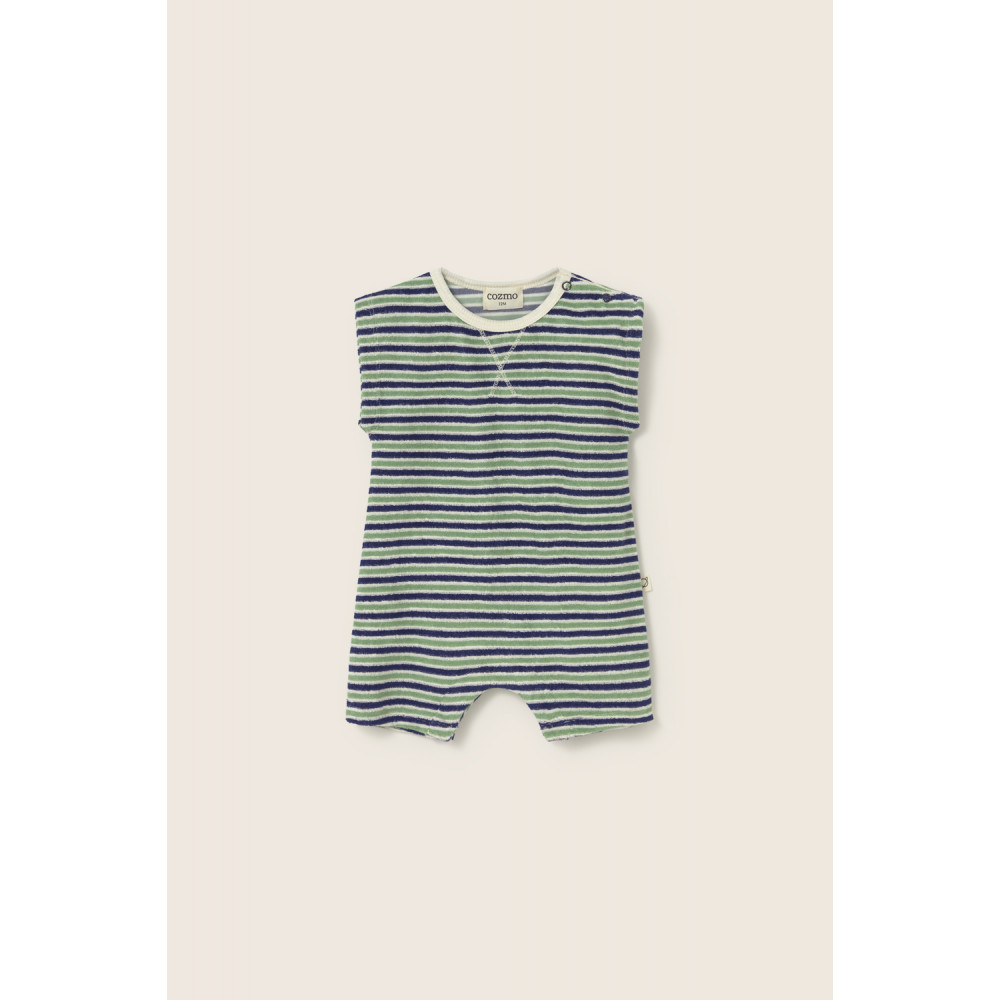 Striped Terry Baby Romper Blue Green