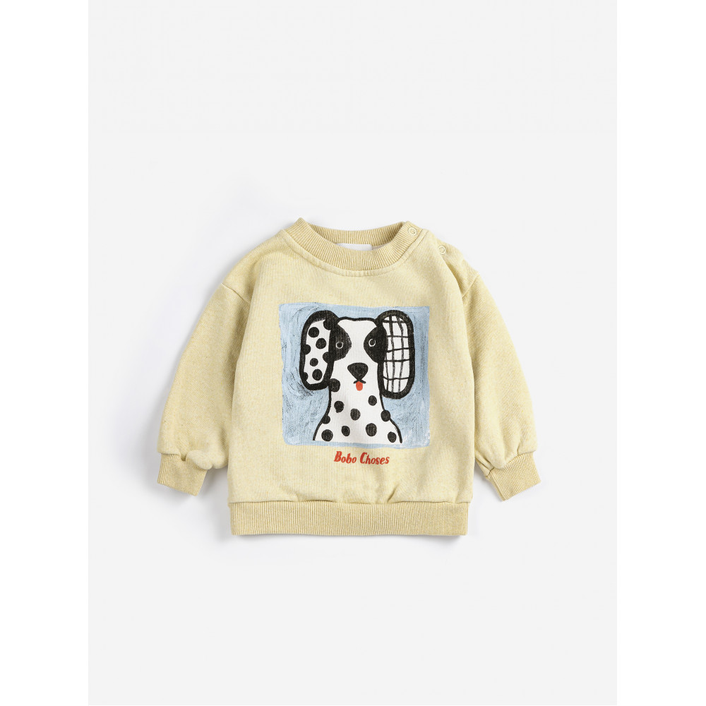 Yellow sweatshirt. Designed with long sleeves, dropped shoulder, shoulder snap fastening, ribbed cuffs, loose fit, ribbed bottom, round neck and fleece. Made in Spain.