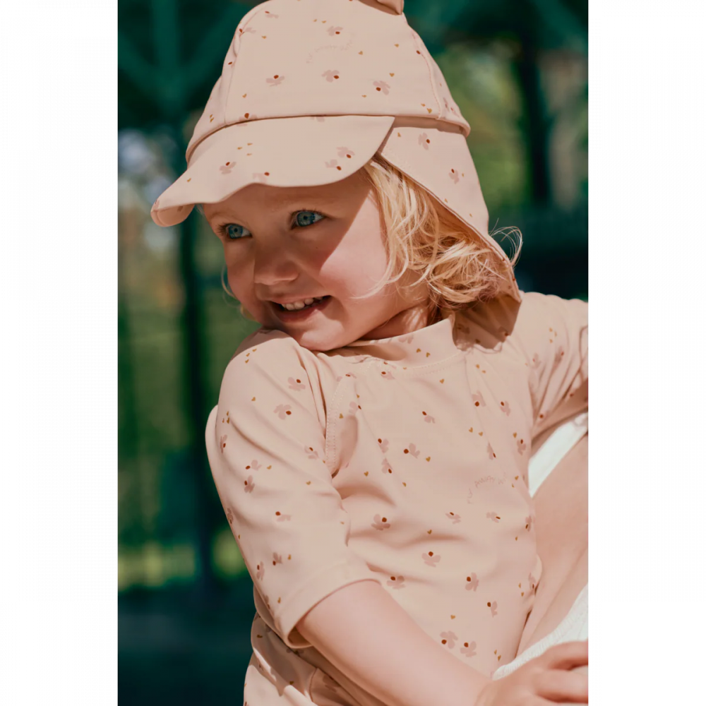 Add a playful touch to sun safety with the SENIA swim hat featuring cute ears, playful prints, and a longer neck flap for added coverage. Made from soft, quick-drying fabric with UV40+ protection, the bendable brim and lightweight design ensure all-day comfort. A summertime must-have for seaside adventures. Swim hat with cute ears and a longer neck shade for sun protection Features a soft, bendable brim that shades the child's face Made from quick-drying fabric with UV40+ protection This product contains 82% GRS-certified post-consumer recycled polyester Note that if the child is between two sizes, we recommend choosing the larger size A sea- and poolside must-have for sunny days