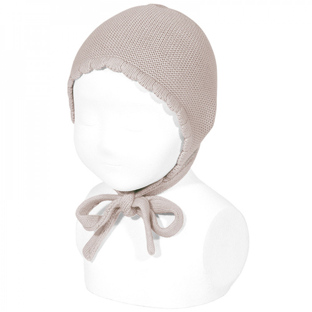 Garter stitch bonnet.100% cotton for baby. Match it with our baby socks, tights and knitwear collection.