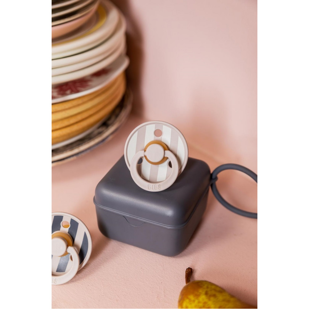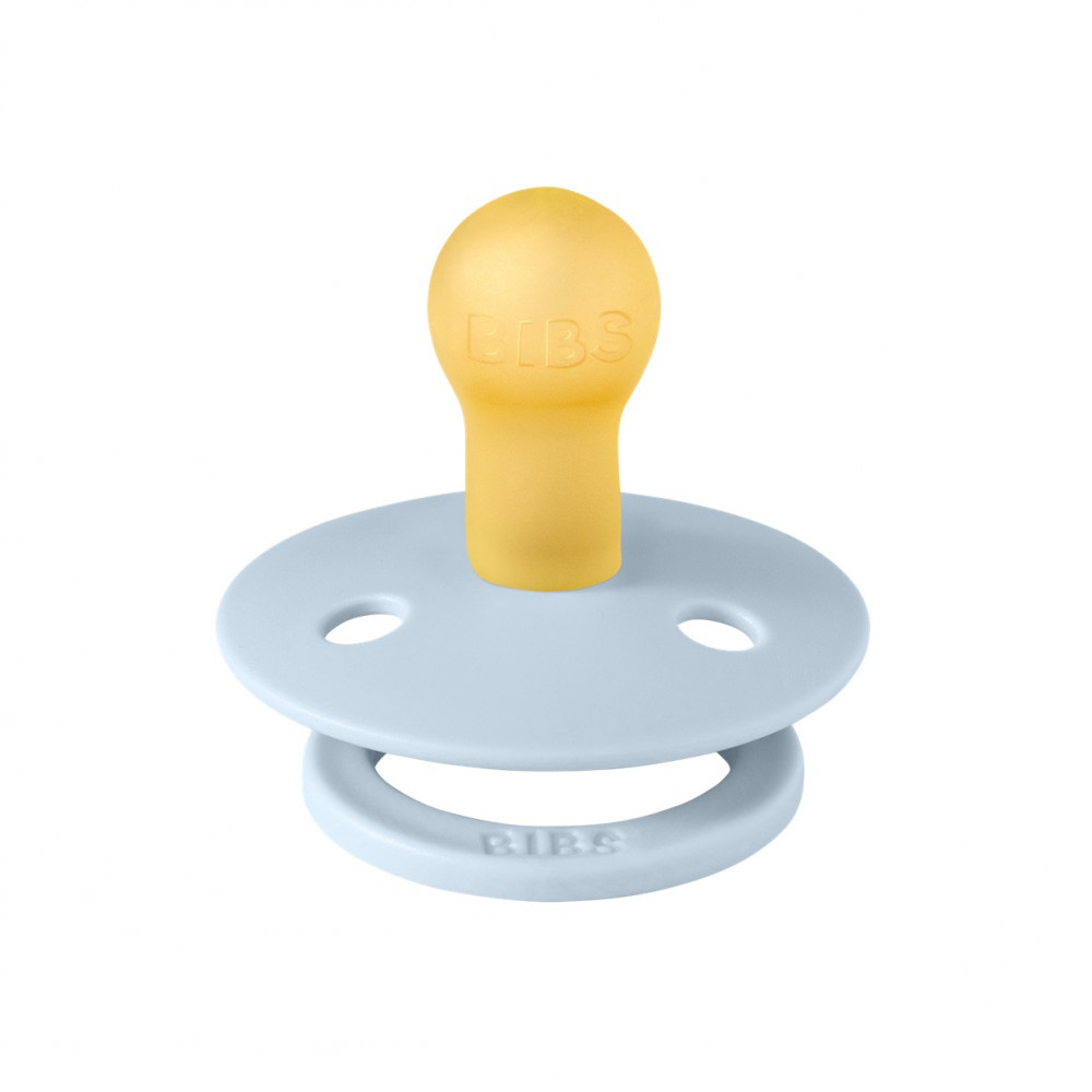 BIBS Colour is the original BIBS pacifier, which has been on the market for over 40 years. The anatomical nipple is designed as the perfect combination of a round and a symmetrical nipple. Round on top to support the natural sucking reflex and flat on the bottom for comfortable placement. The sucking technique does not require as much force as, for example, a round pacifier. The Colour pacifier features the signature BIBS round shield with three vents and a round handle ring with BIBS engraving. The shield is carefully designed to cover the sensitive and delicate skin around your baby's mouth to prevent moisture build-up. The shield comes in one size, regardless of nipple size.