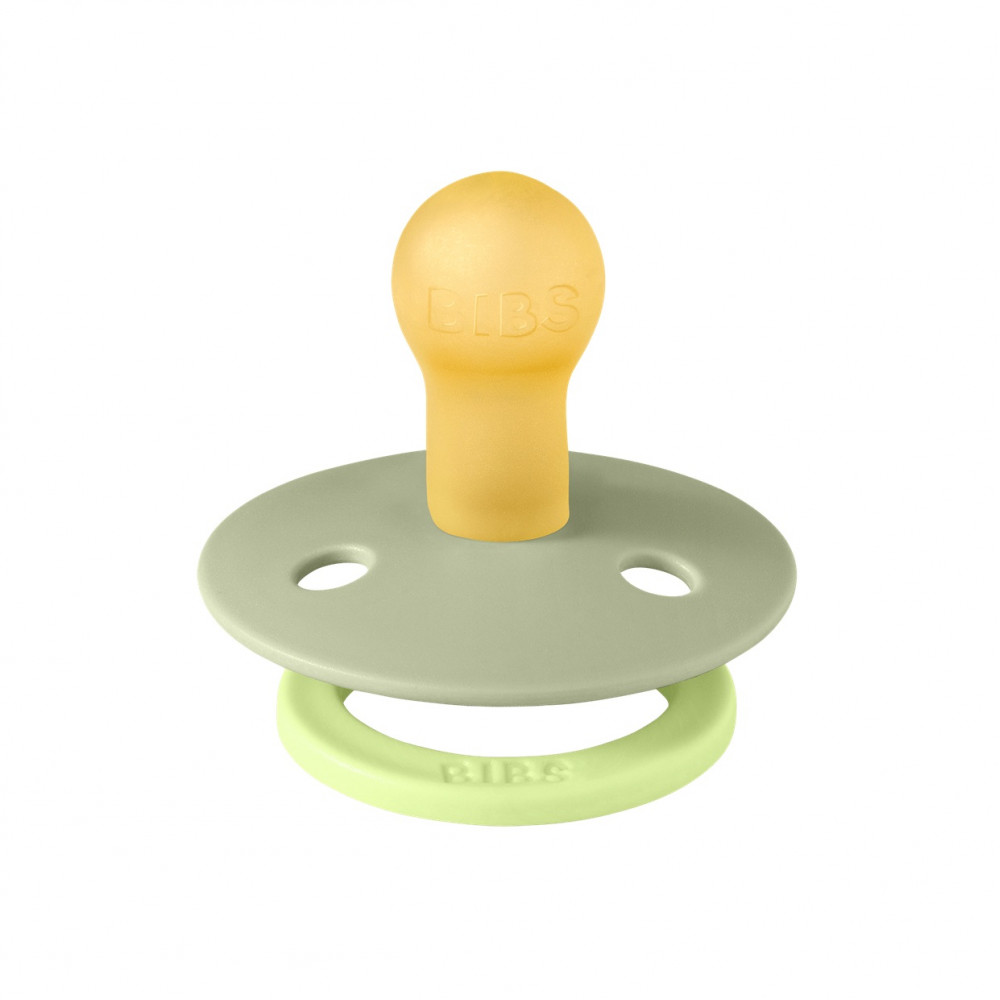 BIBS Colour is the original BIBS pacifier, which has been on the market for over 40 years. The anatomical nipple is designed as the perfect combination of a round and a symmetrical nipple. Round on top to support the natural sucking reflex and flat on the bottom for comfortable placement. The sucking technique does not require as much force as, for example, a round pacifier. The Colour pacifier features the signature BIBS round shield with three vents and a round handle ring with BIBS engraving. The shield is carefully designed to cover the sensitive and delicate skin around your baby's mouth to prevent moisture build-up. The shield comes in one size, regardless of nipple size.
