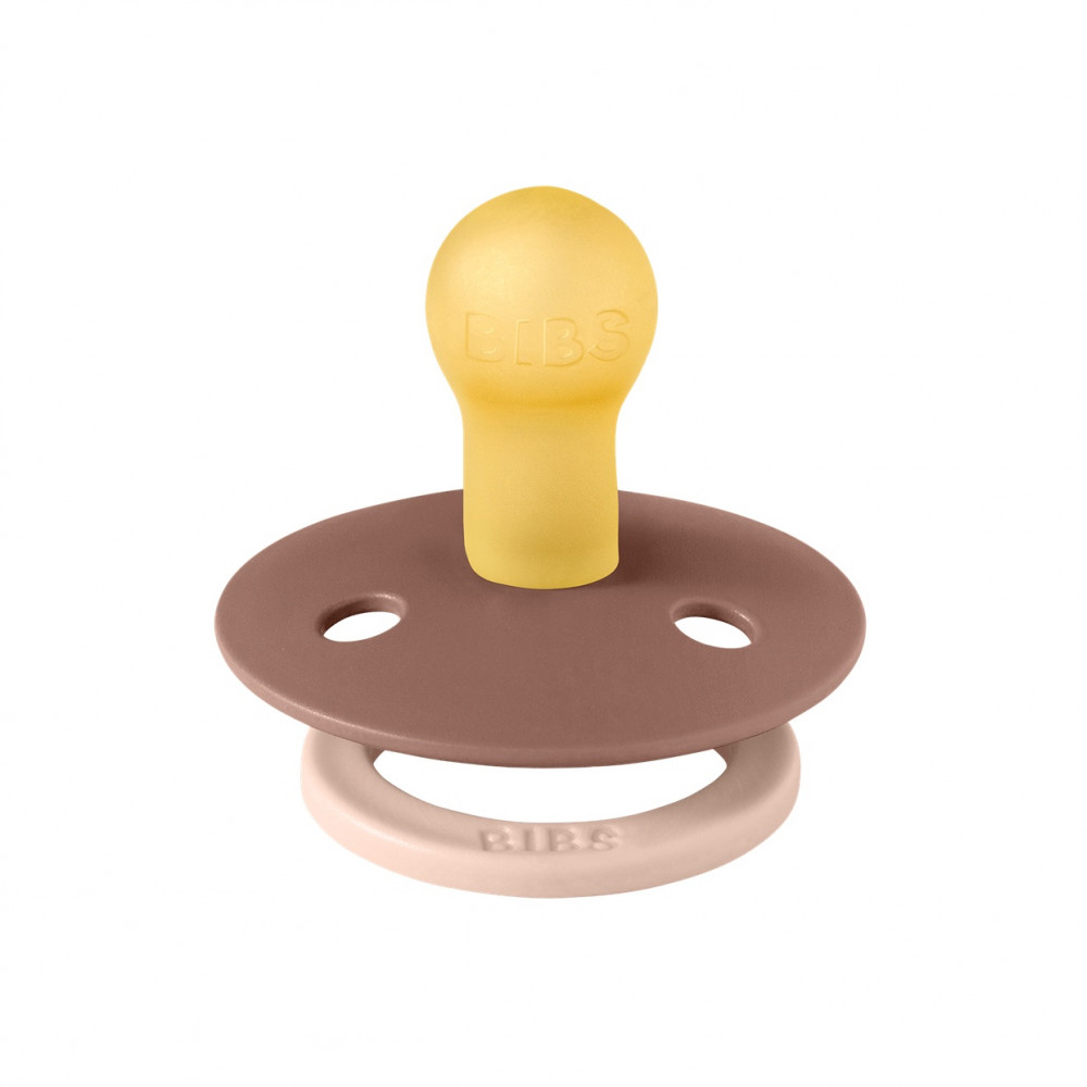 BIBS Colour is the original BIBS pacifier, which has been on the market for over 40 years. The anatomical nipple is designed as the perfect combination of a round and a symmetrical nipple. Round on top to support the natural sucking reflex and flat on the bottom for comfortable placement. The sucking technique does not require as much force as, for example, a round pacifier. The Colour pacifier features the signature BIBS round shield with three vents and a round handle ring with BIBS engraving. The shield is carefully designed to cover the sensitive and delicate skin around your baby's mouth to prevent moisture build-up. The shield comes in one size, regardless of nipple size.