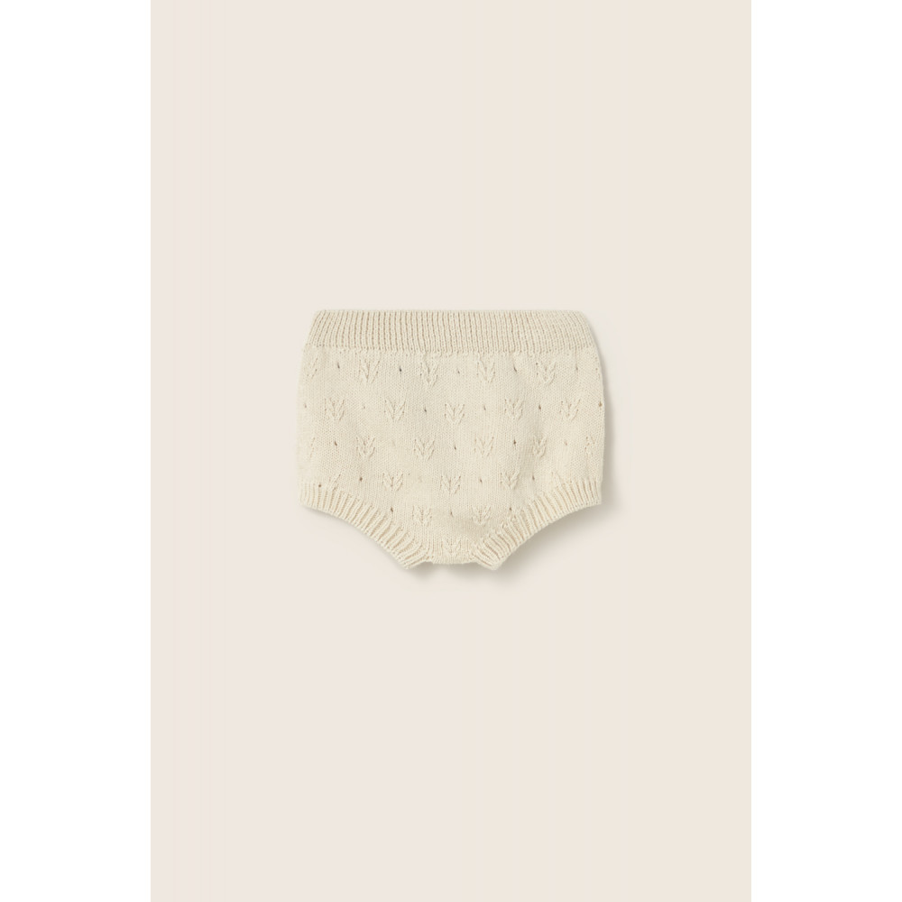 Bloomers in light cotton tricot with a delicate openwork design. Elastic at waist and leg openings. Herringbone pattern all over.