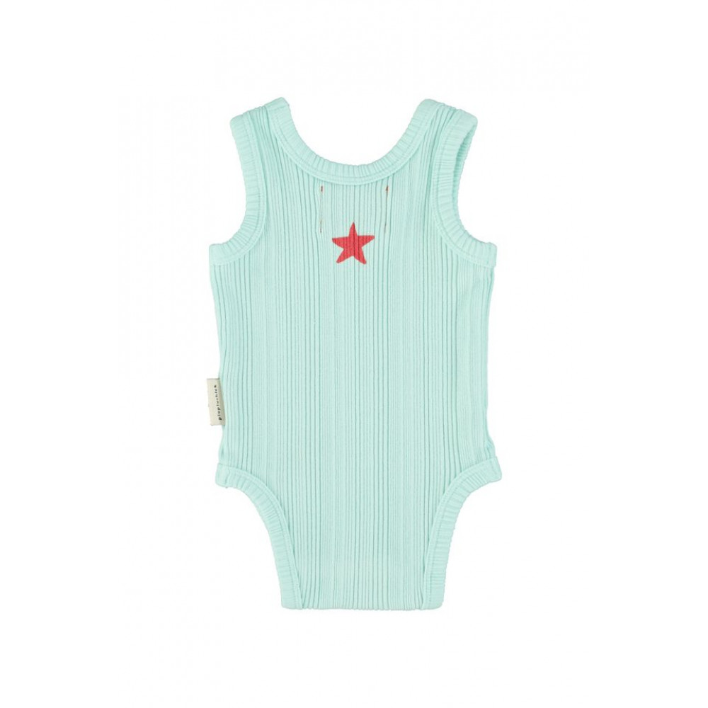 Baby sleeveless bodysuit in ribbed jersey with easy popper buttons on the crotch. Wash cold (max 30ºC) . Do not bleach . Do not tumble dry . Iron cool (max 110ºC) . Do not dry clean