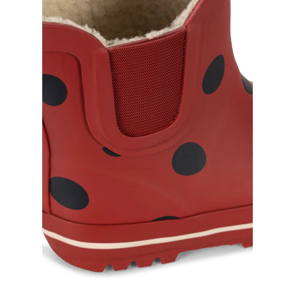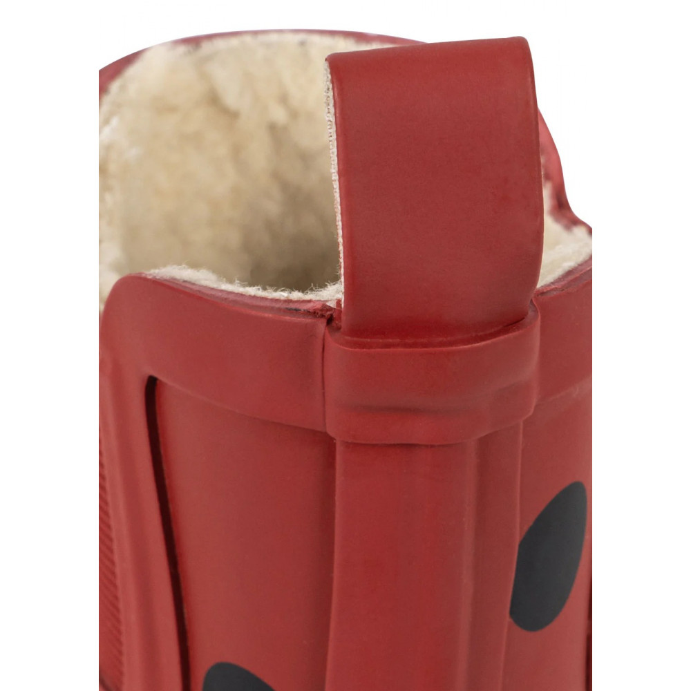 Light and comfortable rain boots with warm fleece lining. Designed with a tab in the back that makes it easy for little hands to pull on.
