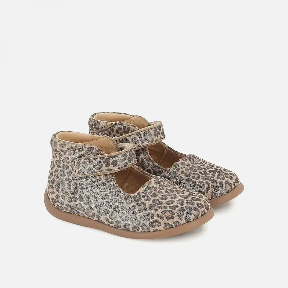 This first-step shoe is presented in a leopard-effect metallic leather version. Lightweight and with a rubber sole, this shoe is designed with quality materials for proper foot development. An Anti-Twist reinforcement at the back of the shoe ensures optimum support and stability, while offering flexibility at the front of the foot. Velcro fastening for easy ankle adjustment.