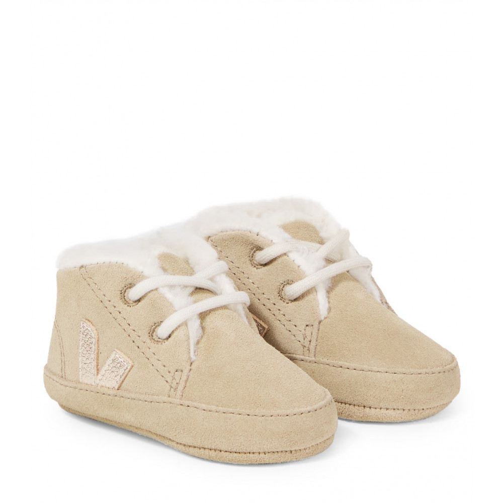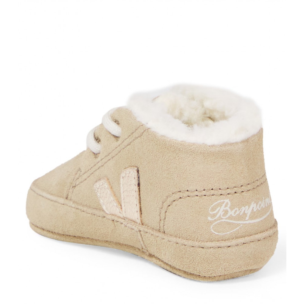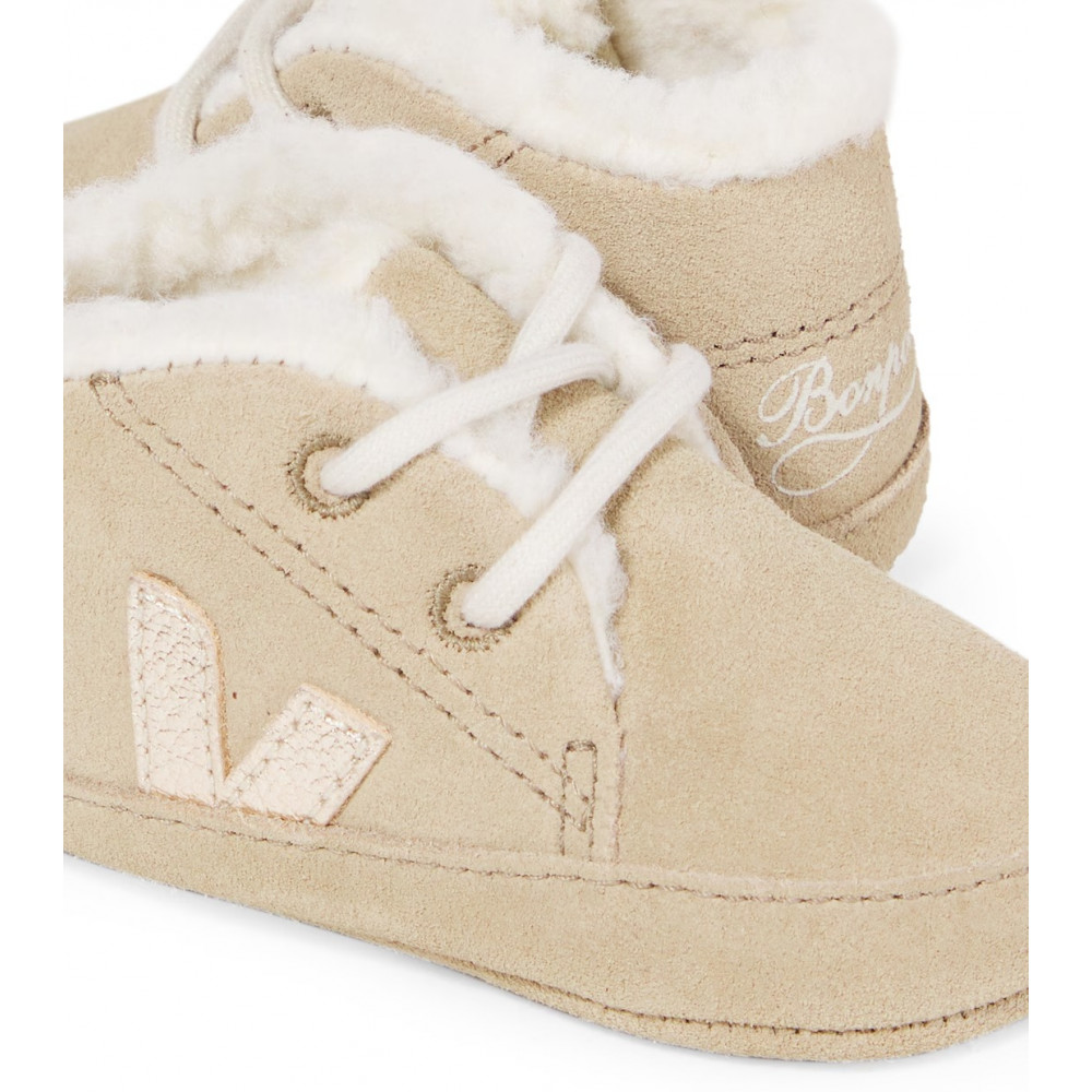 VEJA and Bonpoint team up for a second collaboration around the Baby style, this time with fleece lining (sheepskin look knitted fabric). This collaboration includes two other V-10 styles, made with ChromeFree leather and Suede.