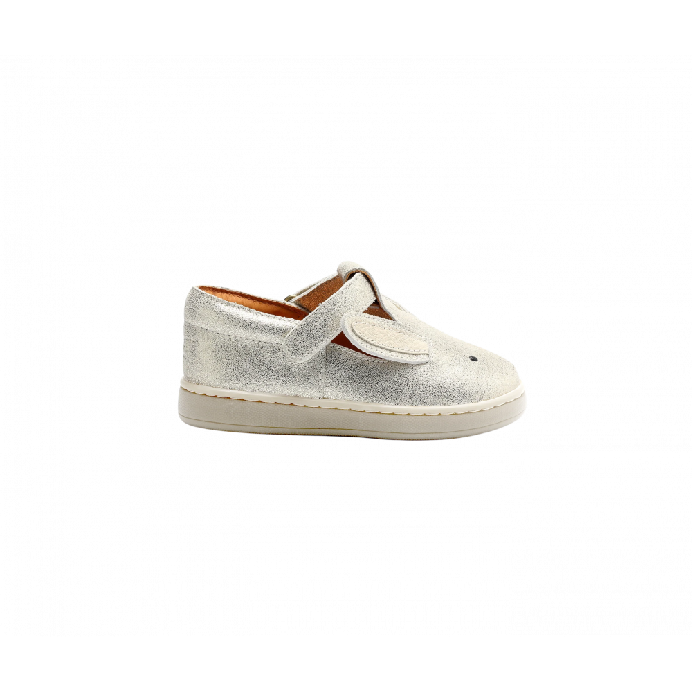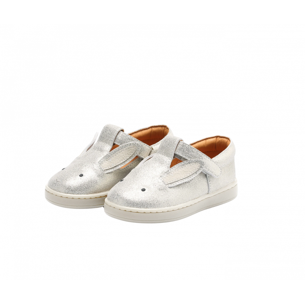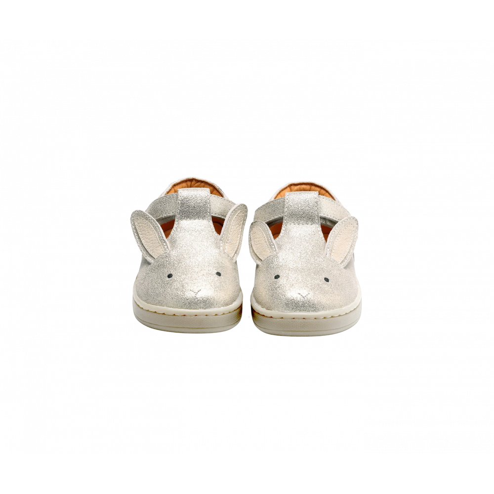 A bunny hop! Off they go on a summer adventure wearing the adorable Esterre Shoes. Crafted with 100% premium leather in a shimmering silver metallic finish and featuring delightful Donsje bunny details, this pair comes with adjustable velcro fastening straps to make putting the shoes on or taking them off completely hassle-free.