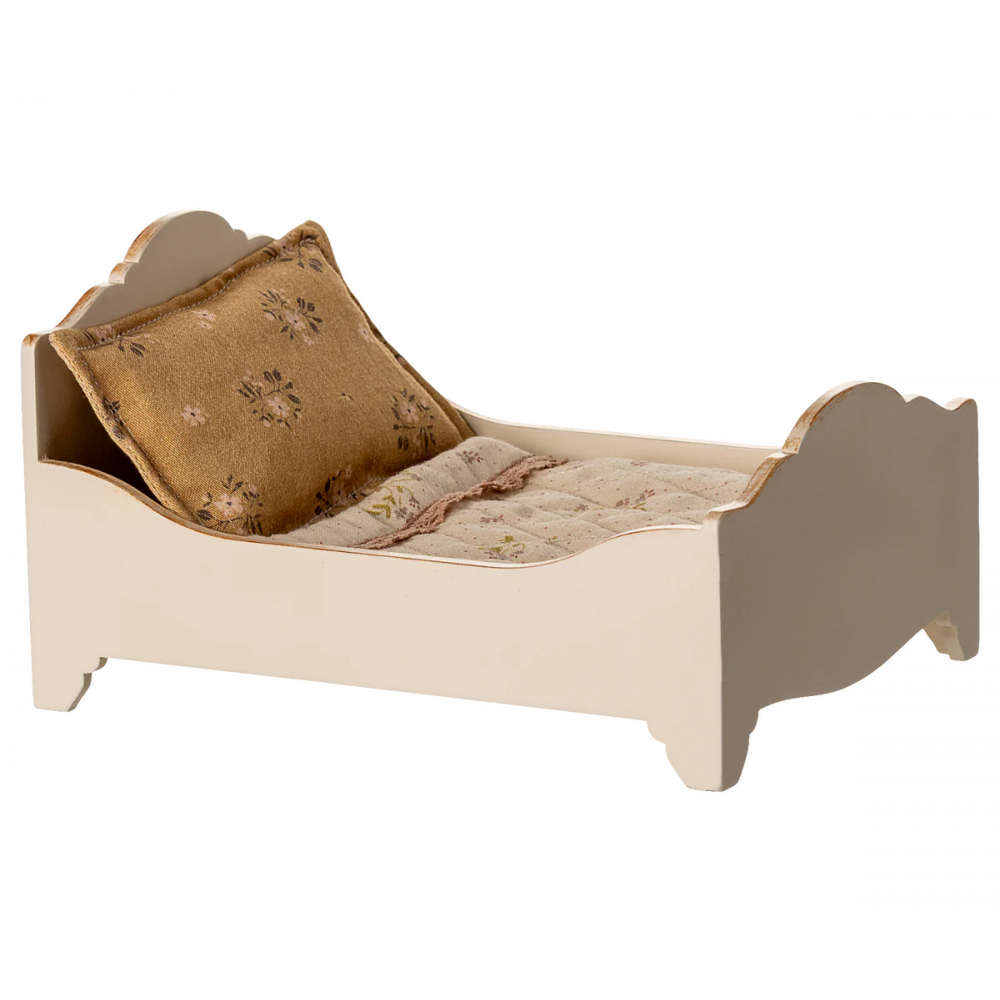 The perfect bed for a good nights sleep. This bed has beautiful small details such as golden finish on the wood and beautiful collected fabrics for bedlinen. Two mice can easily sleep side by side as it fits big sister/brother mice. Dimensions Height: 3.74in, Width: 6.30in, Depth: 4.72in, Net weight: 0.44lb