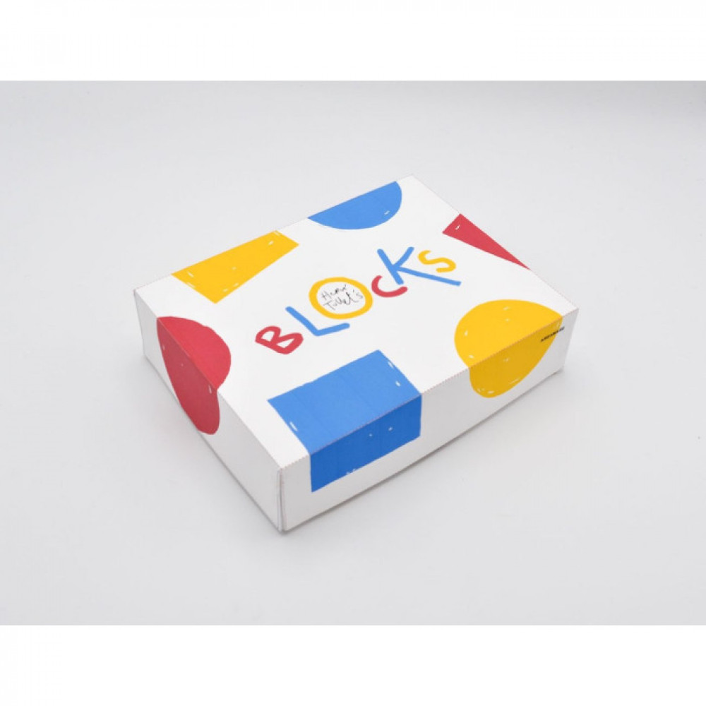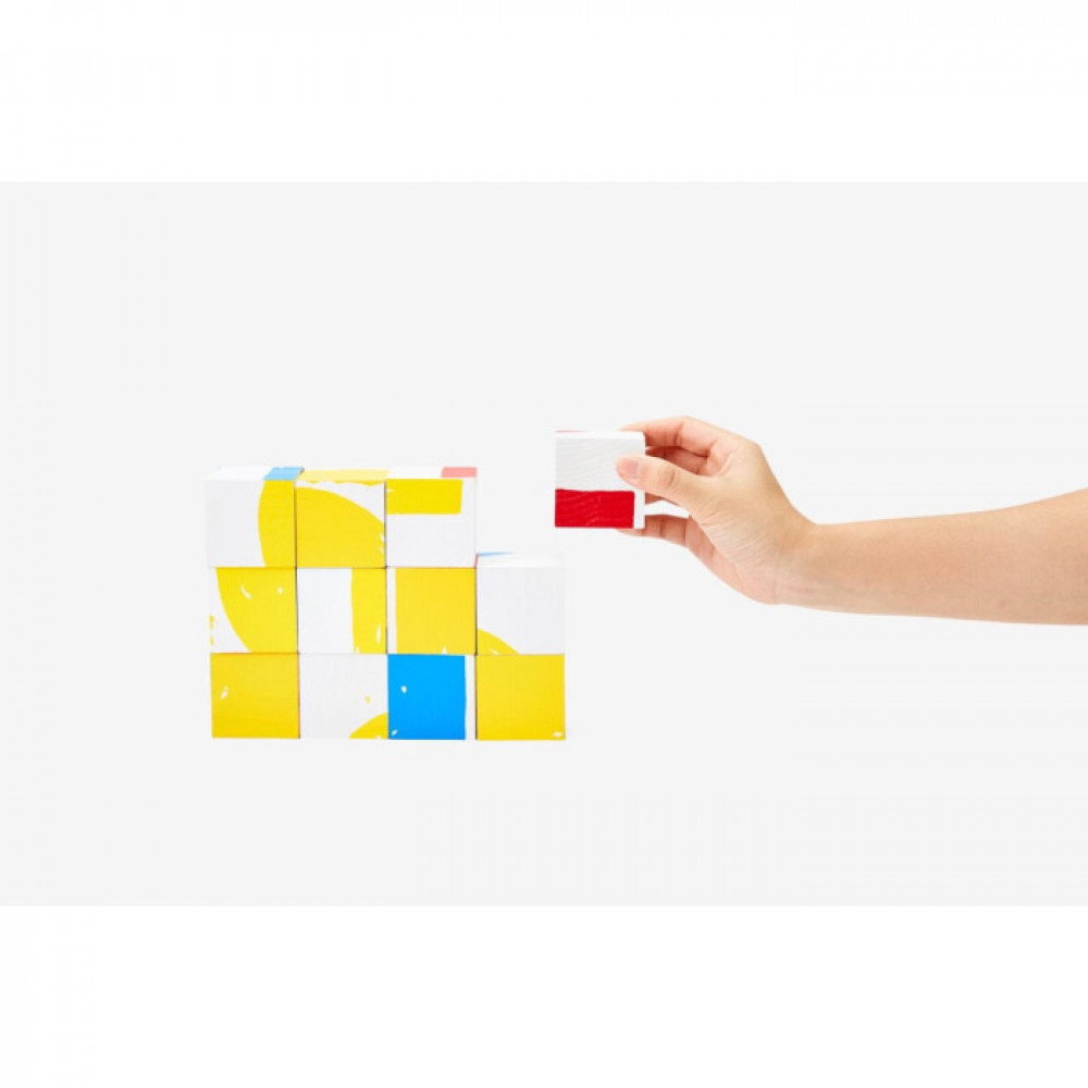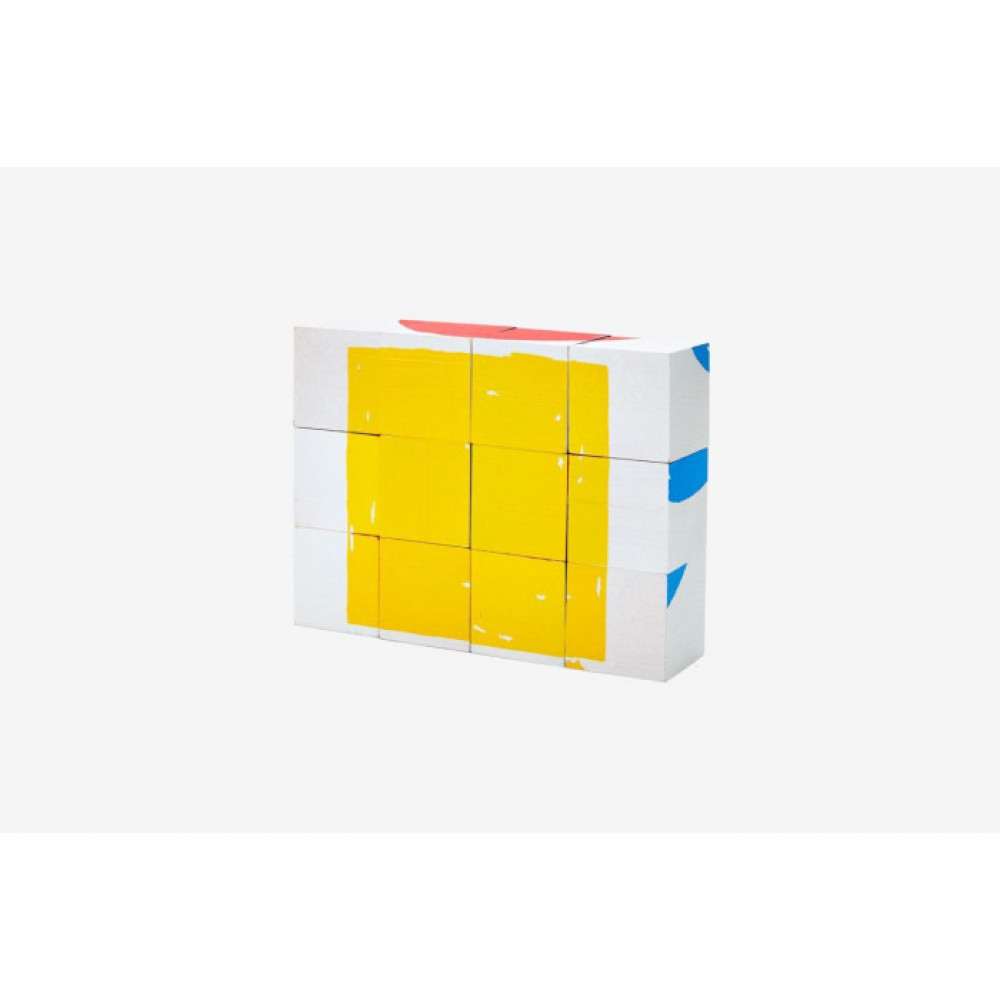 Twelve blocks that can be arranged to form a circle or square in red, yellow and blue. Mix them to create an endless amount of abstract compositions and playful sculptural forms. Herve Tullet is known for his love of simple and playful forms. He is the author of more than 75 famous children's books, including the press here, the mixture and the scribble book. Blocks is his first sculptural object. 21 x 16 x 5 cm