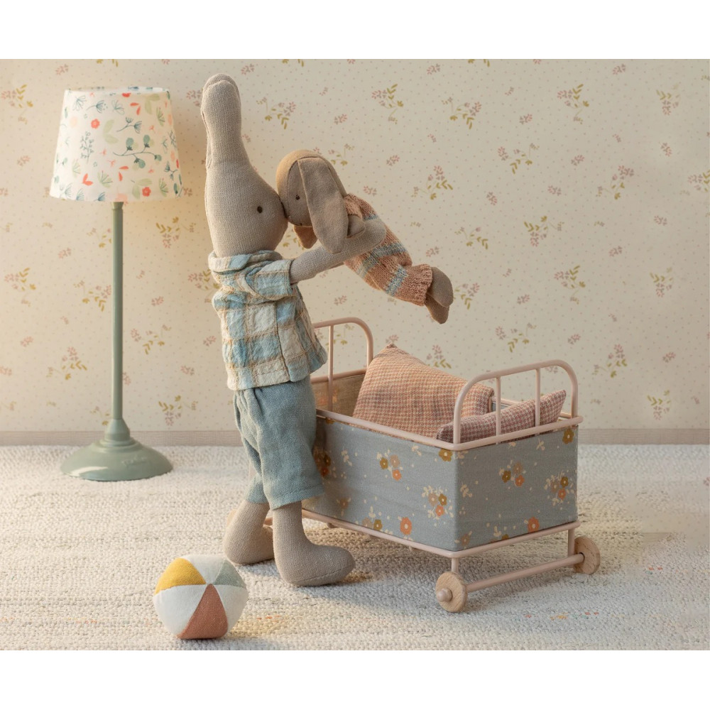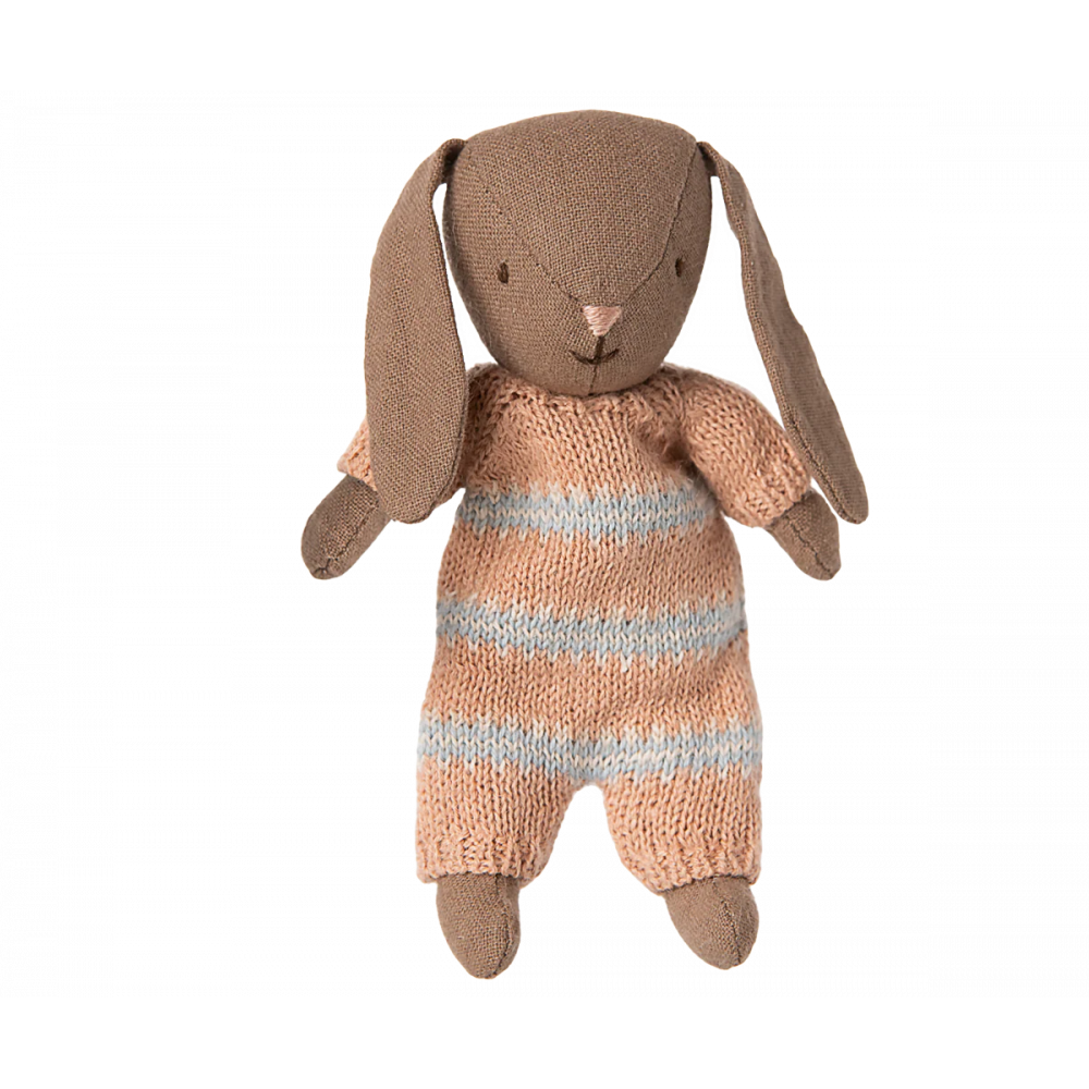 Let the storytelling and hours of play begin with this soft bunny. It fits Maileg accessories in size micro perfectly and can live in the House of miniature dollhouse. This bunny has magnets in hands. Dimensions Height: 4.33in, Net weight: 0.02lb