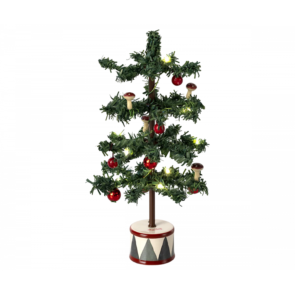 This small Christmas tree fits perfectly into the Gingerbread House. Small decorations are added on the branches and if you add a battery the LED bulbs will lighten up the tree. Battery is not included. Need 1 coin cell battery Dimensions Height: 6.30in, Net weight: 0.13lb