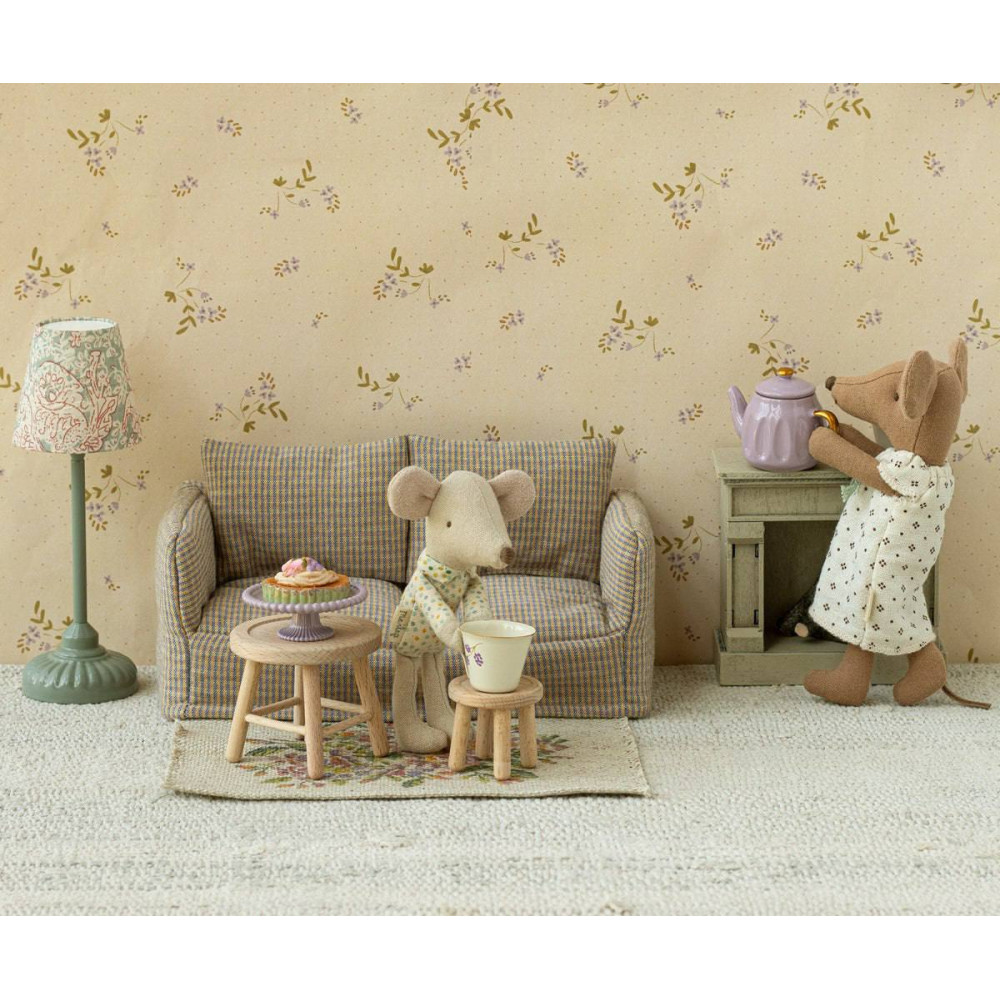 All families needs a soft couch to rest in. The mice family can all sit tight in this and have a cosy time, it fits perfectly to the living room in the Mouse hole Farmhouse. Height: 7.50cm, Width: 17.00cm, Depth: 8.00cm, Net weight: 0.16kg