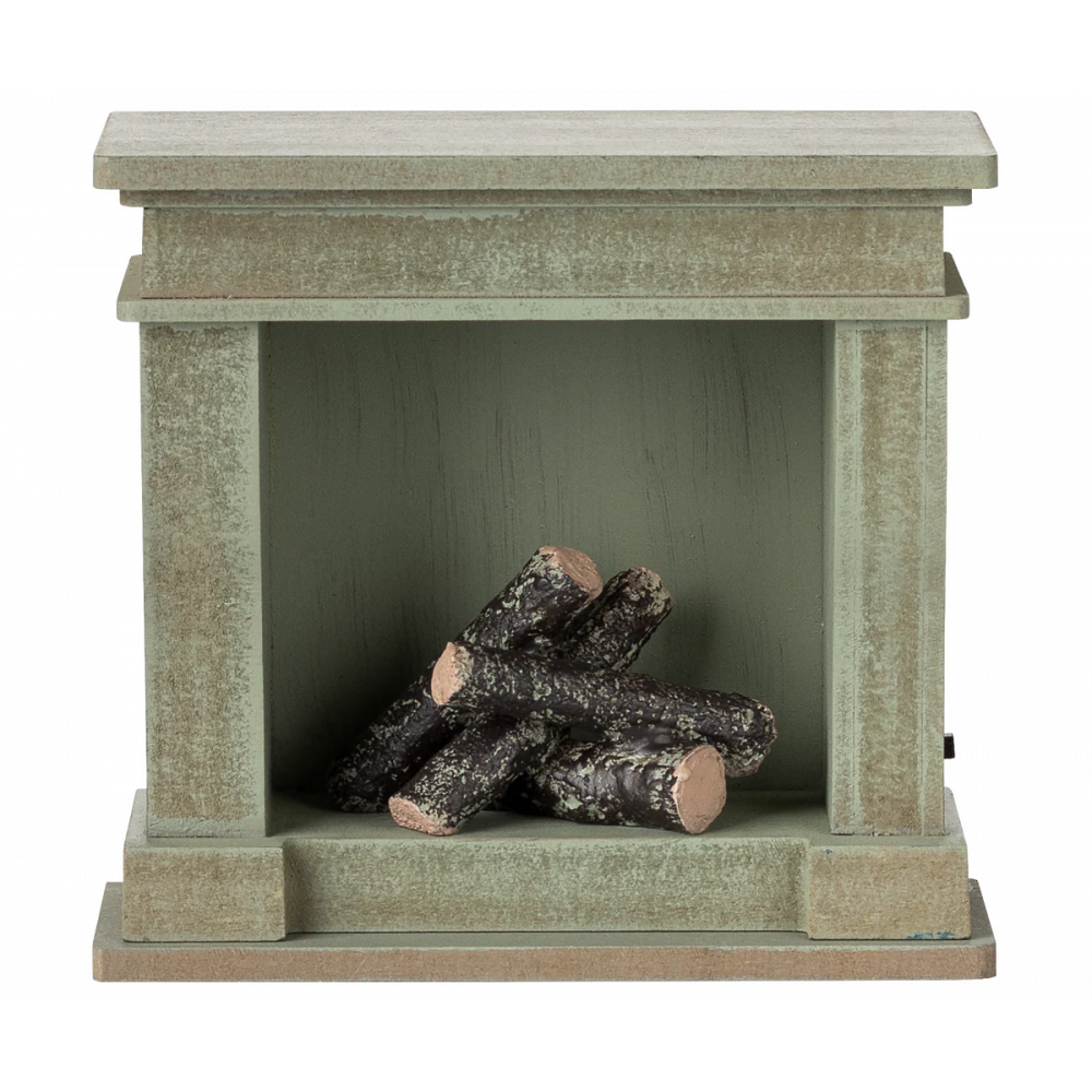 Use this wooden fireplace to warm your miniature home. It has an authentic look and a vintage finish. Remember to turn it off when your friends go to bed. The product comes without a battery. You can add a coin cell battery Dimensions Height: 4.33in, Width: 4.53in, Depth: 2.17in, Net weight: 0.51lb