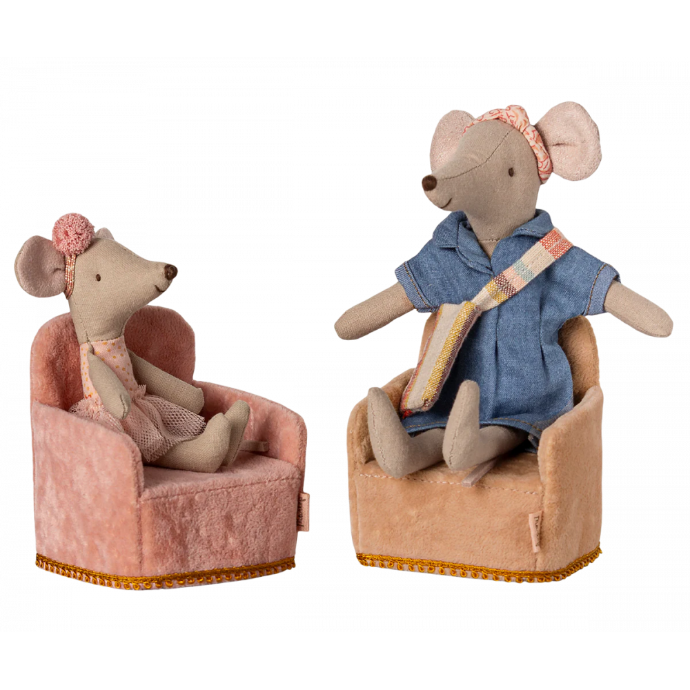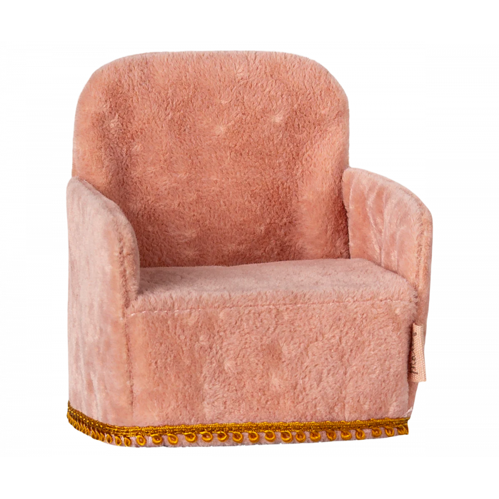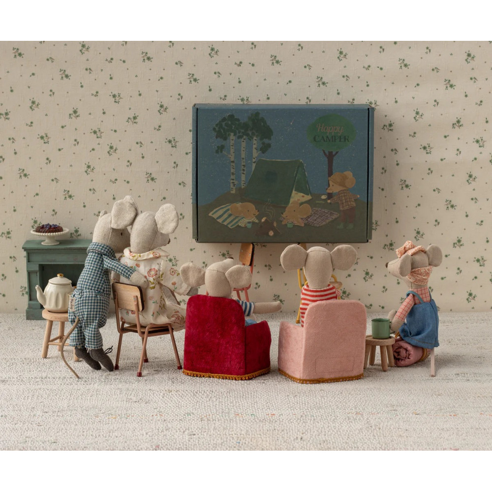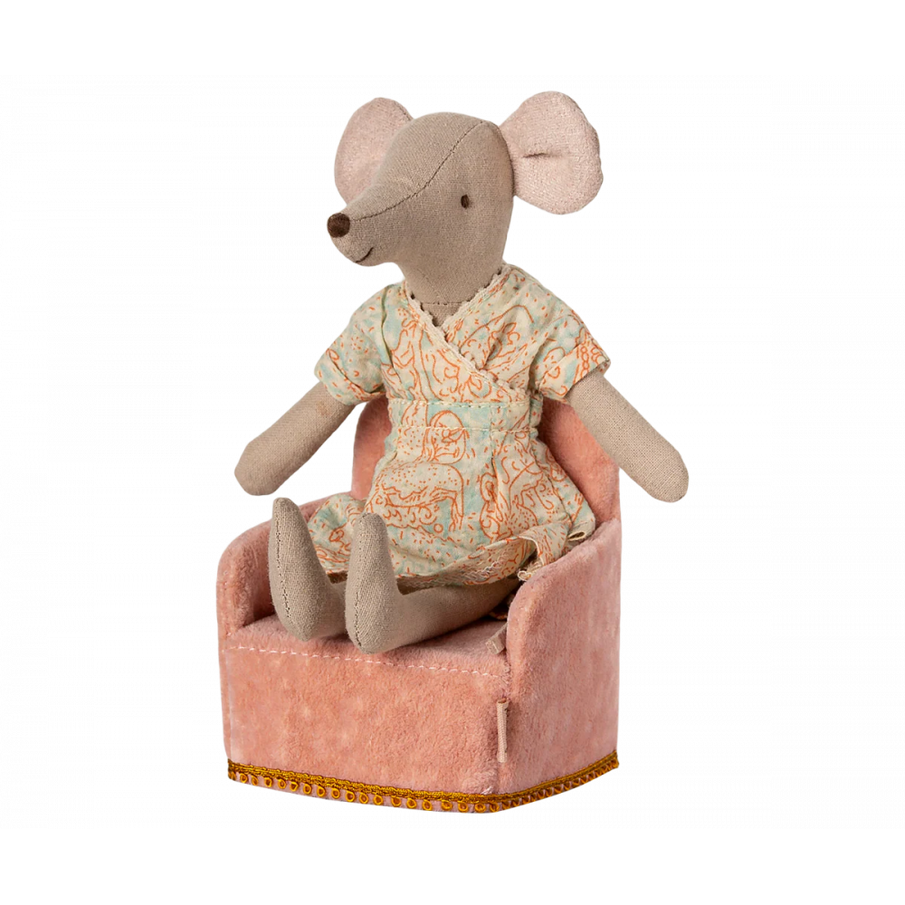 A perfect place for your small Maileg friends to take a rest. It fits nicely into the Mouse hole Farmhouse. The chair is delivered flat packed and is easy to fold and assembly. Height: 7.50cm, Width: 6.50cm, Depth: 6.00cm, Net weight: 0.02kg