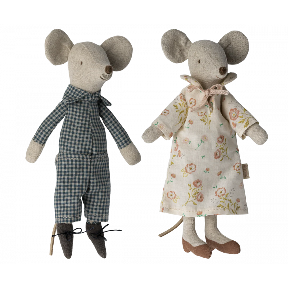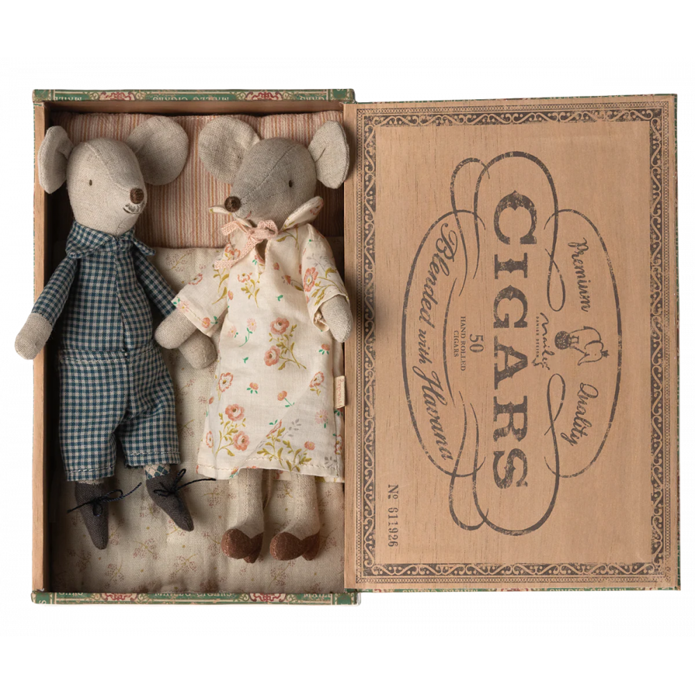 Grandma & Grandpa Mouse cherish every moment with their little grandmice. Dressed in their cosy nightclothes, they settle into their matchbox bed, sharing stories of the good old days before drifting off to sleep. Dimensions Height: 6.69in, Net weight: 0.66lb