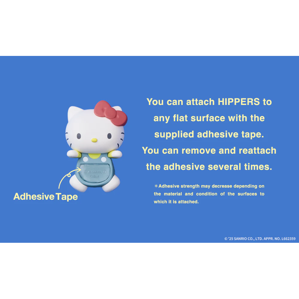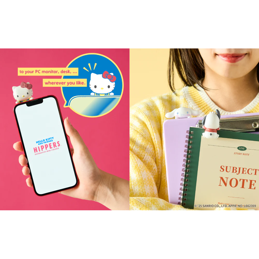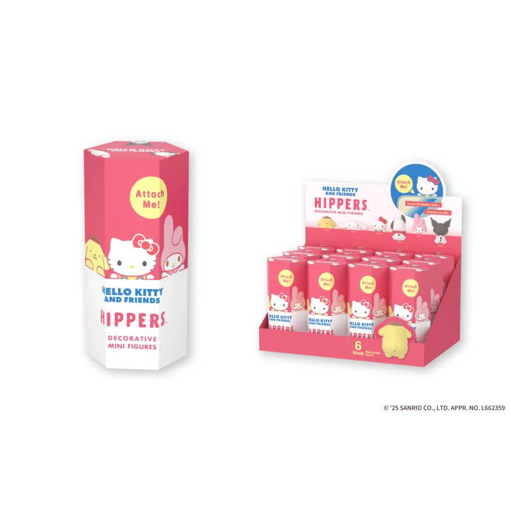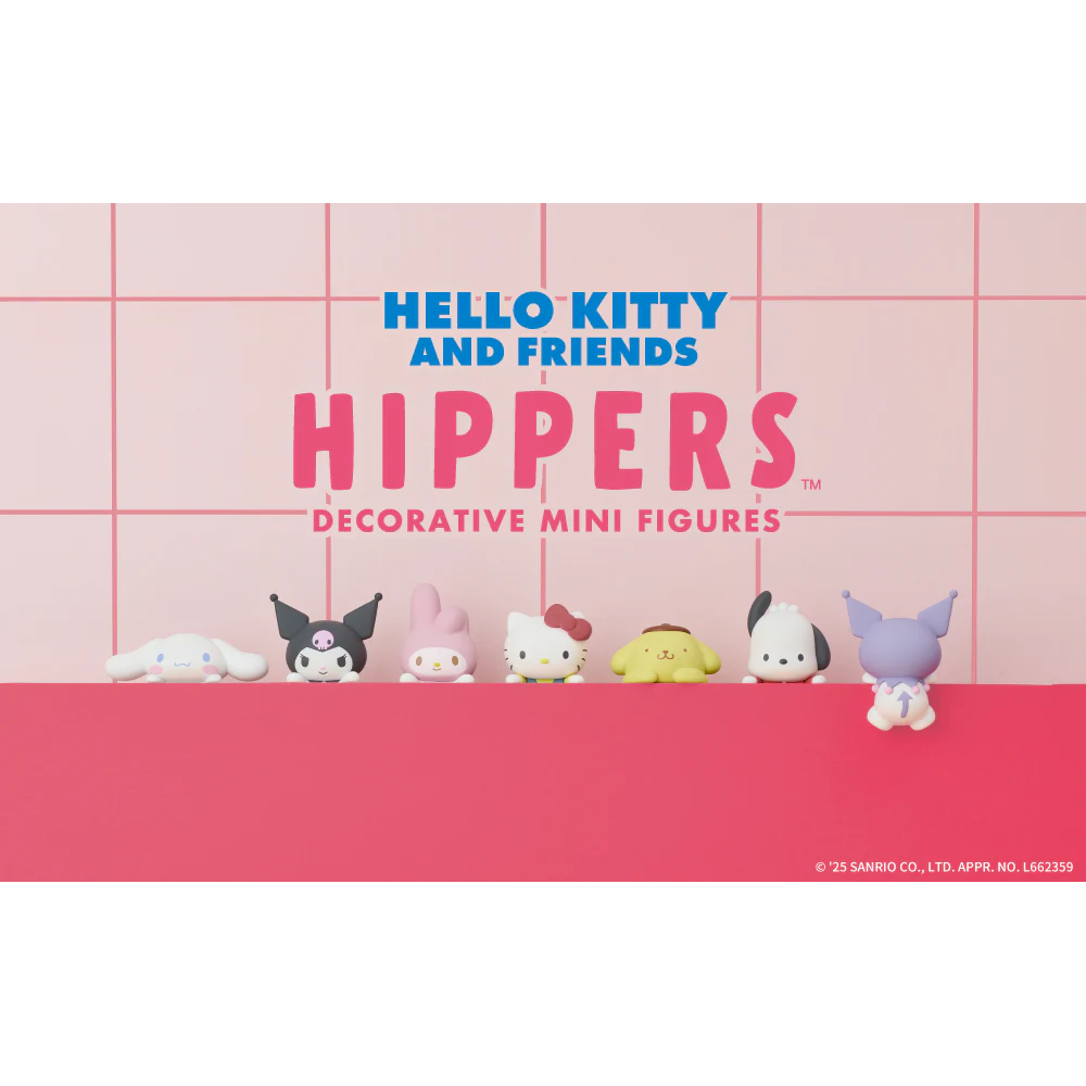 The globally popular, generation-crossing Sanrio characters have officially transformed into the gorgeous "HIPPERS" decorative figures that can be freely glued together! This lineup includes: Hello Kitty, Pompompurin, Kuromi, My Melody, Cinnamoroll, and Pochacco—the entire cast is here! From the front, you can see their adorable peeking-out poses, and from the back, you can admire their round bottoms. These cute images are sure to add color to your daily life. HIPPERS are decorative figurines that can be attached to everyday items, giving your favorite objects a cute new look anytime, anywhere! Suitable for various items such as computers, smartphones, and photo frames. Whether at the office or out and about, you can spend time with your favorite characters anytime, anywhere♪ Try sticking "HIPPERS" on your computer, smartphone, photo frames, or small items on your desktop! Your everyday items will become even more special! Featuring a blind box design, you'll never know which design you'll get until you open the box! The complete set includes 7 designs (6 basic designs + 1 hidden design), with each box containing 12 random designs.