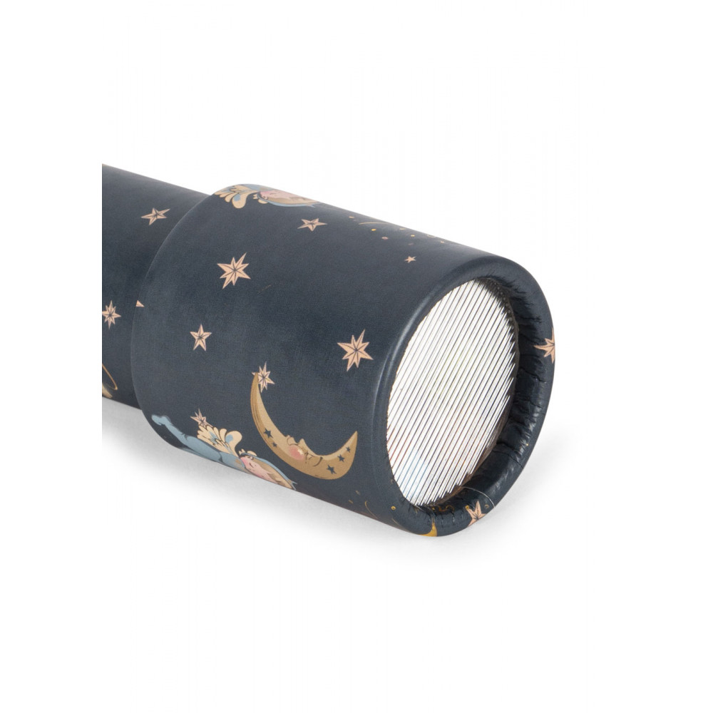 Magical kaleidoscope with colorful pearls inside. Look inside and experience patterns and colors created by the reflections from the mirrors and colored stones. L: 19 cm x D: 4,5 cm Suitable from 3y+ This product is made of FSC™-certified and other controlled material.