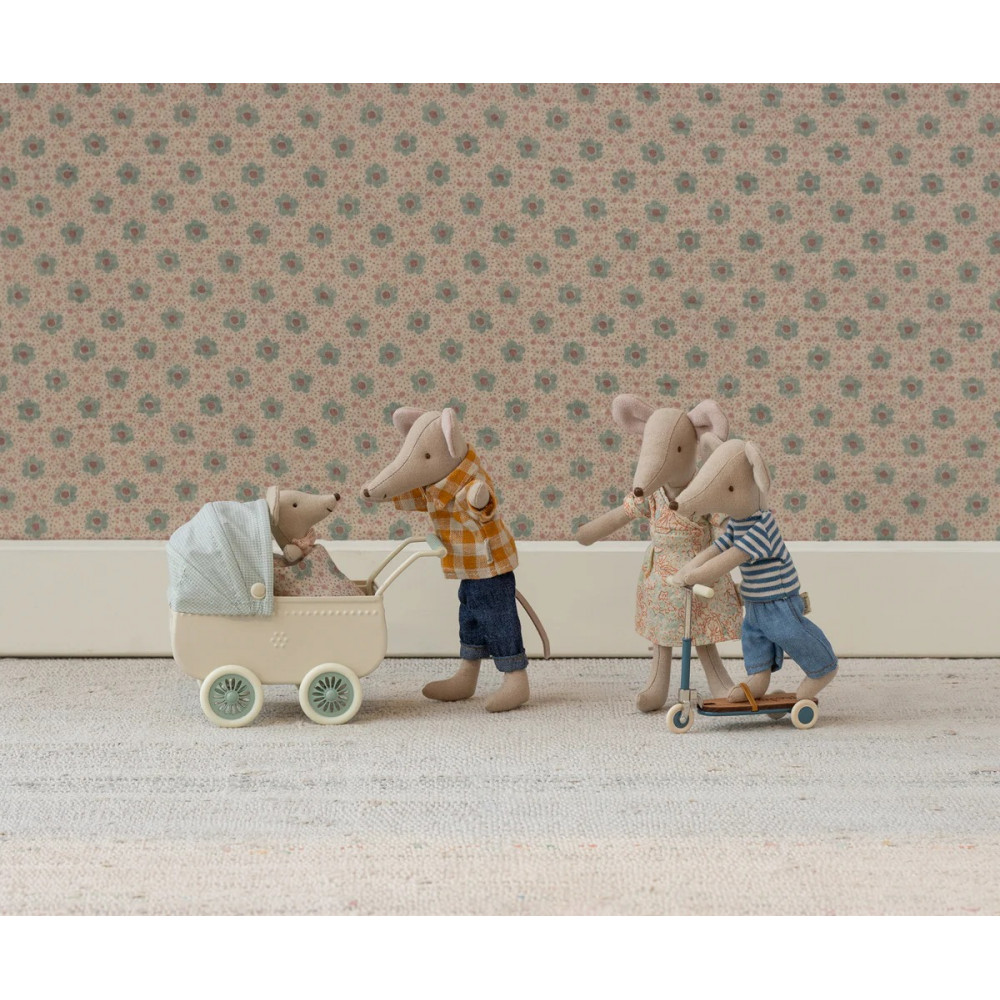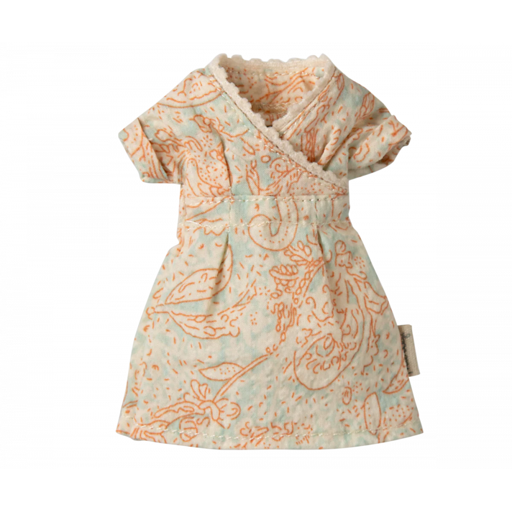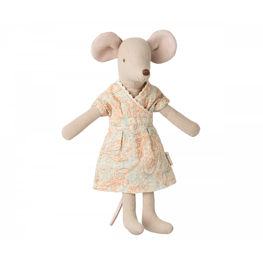 A classic Maileg item; Mum mouse in a light dress. This mouse fits furniture and accessories in size mouse. Buy more clothes separately. Clothes in size mum/dad fits this mouse. Height: 15.00cm, Net weight: 0.02kg