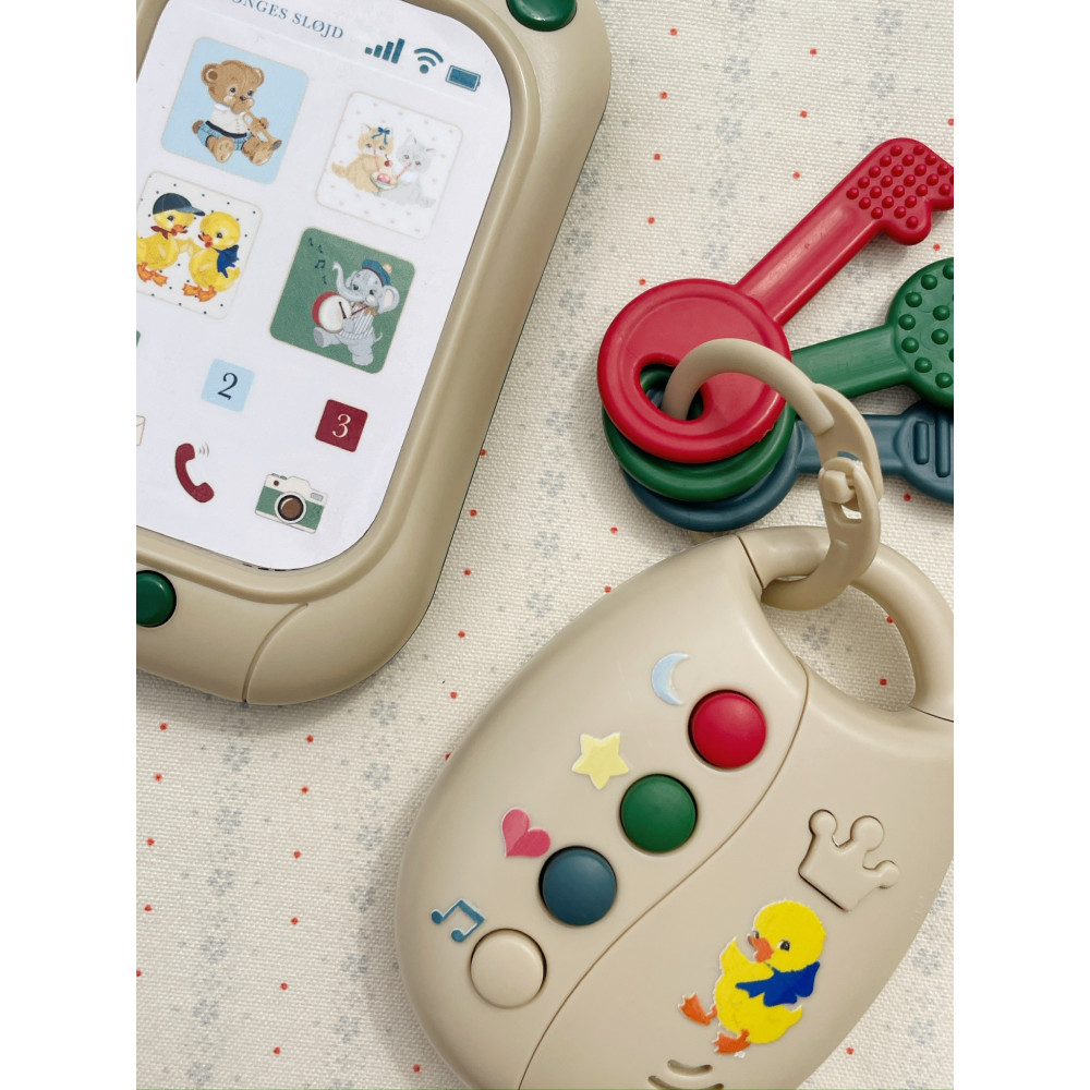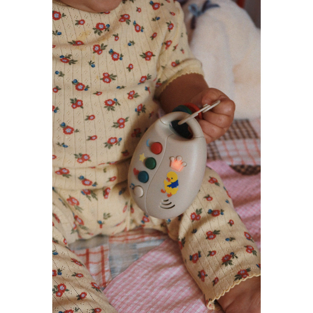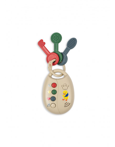 Let your little one explore and play with a set of keys that it's OK to toss around and chew on. The key set is designed with a safe key teether for sore gums to chew on, and also features several fun musical options to explore, including: - Horn Sound - Car Starter Sound - Lock Sound - Light - Music Suitable from 6m+