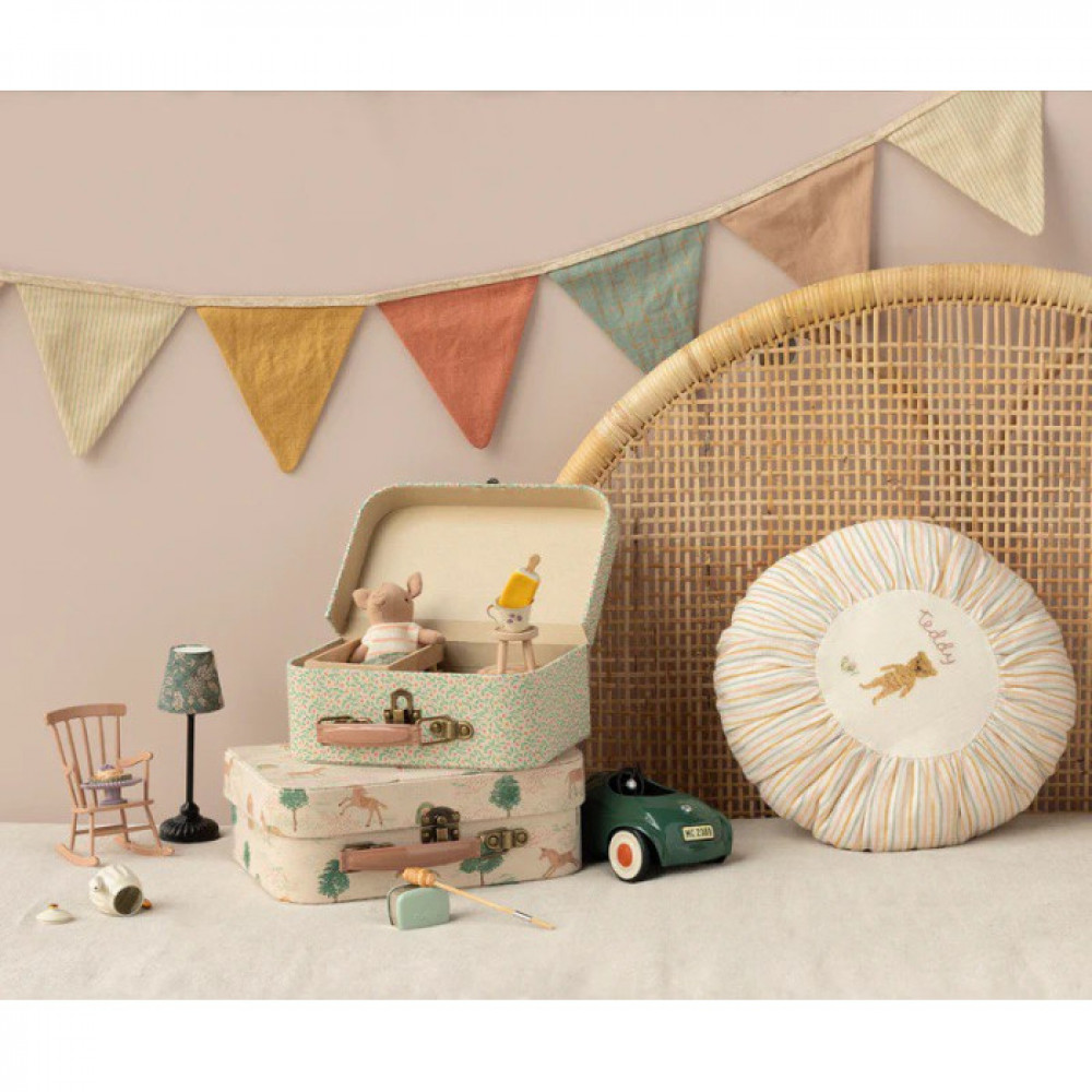 A perfect playset to start any story. This small baby pig sleeps tight in its wooden box with soft bedlinen. Add the bigger sizes of pigs to extend the play. Height: 9.5 cm Width: 6.5 cm