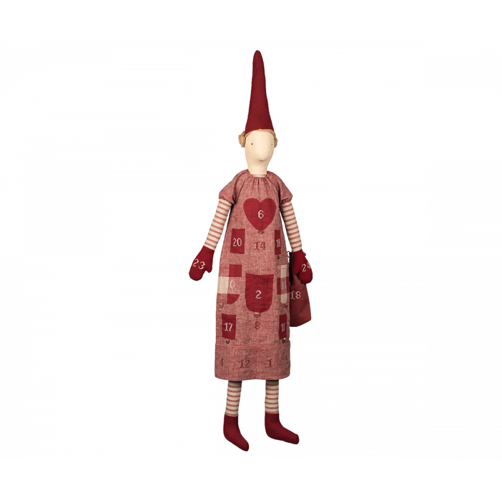 December is full of family traditions and this calendar pixy can be your next. The calendar girl has 24 rings/pockets to fasten small treats - one for each day before Christmas. The pixy has a strap in the neck, so it is easy to hang everywhere. Dimensions Height: 47.64in, Net weight: 0.75lb