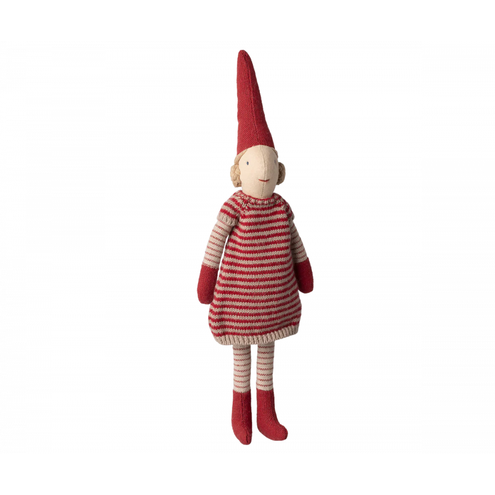 Mailegs pixy collection contains many different styles - all dressed up in nice Christmas clothes made of exclusive materials. They are adorable and can be mixed and matched across sizes and collections. This pixy has a magnet in both hands and in their right foot. Dimensions Height: 10.24in, Net weight: 0.04lb