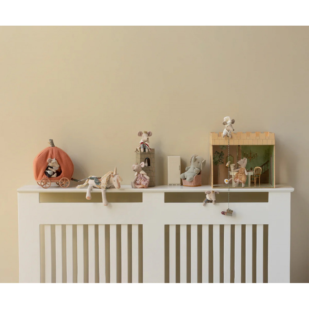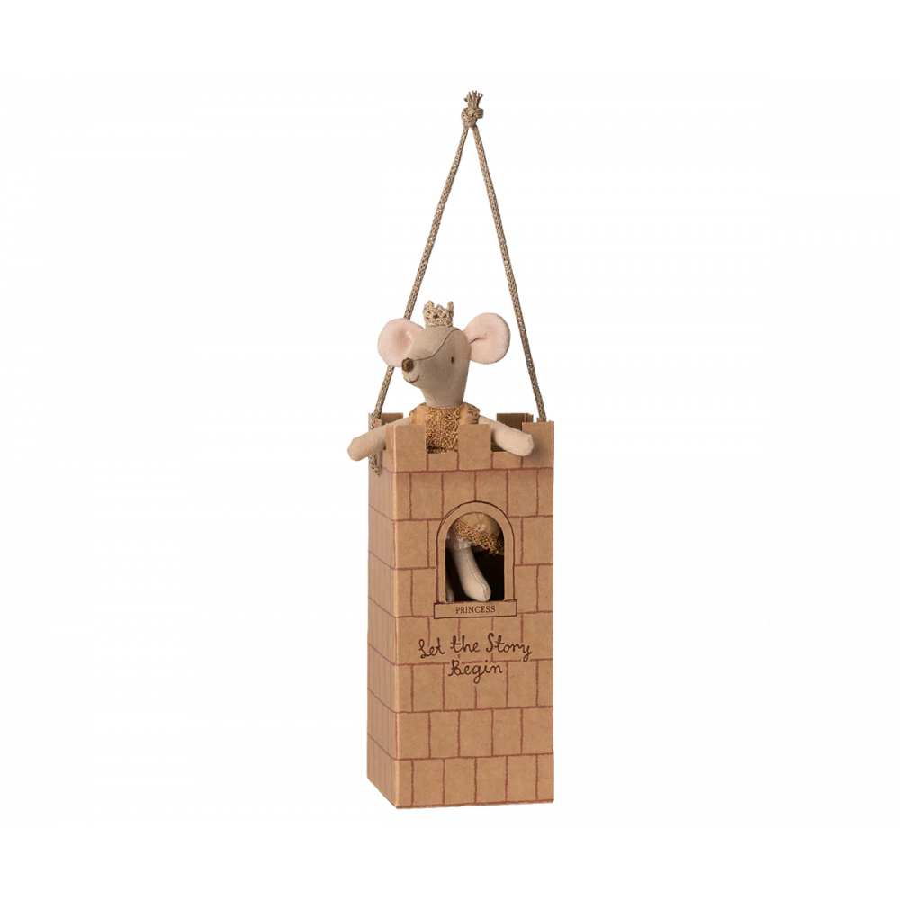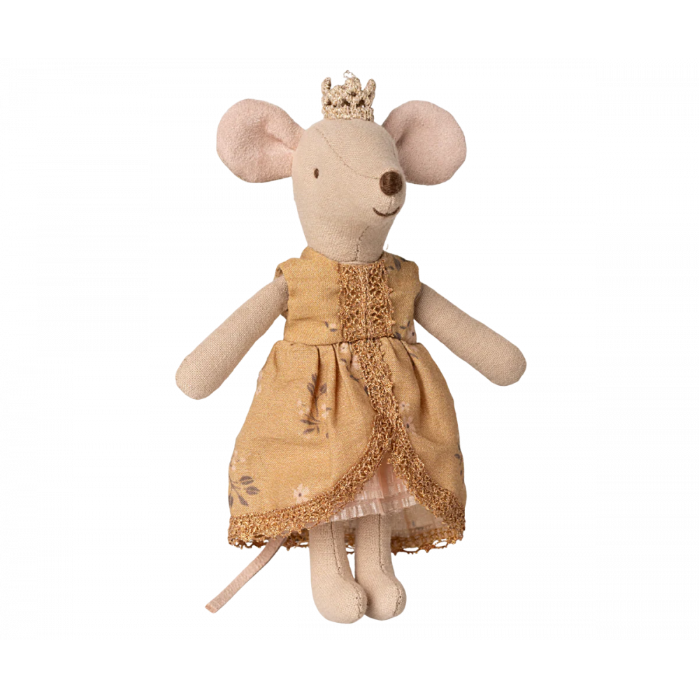 A real princess mouse in a big sister size. She is dressed up in her best dress with beautiful details and a golden crown. She fits perfectly into the Maileg castle. Height: 13.00cm, Net weight: 0.01kg