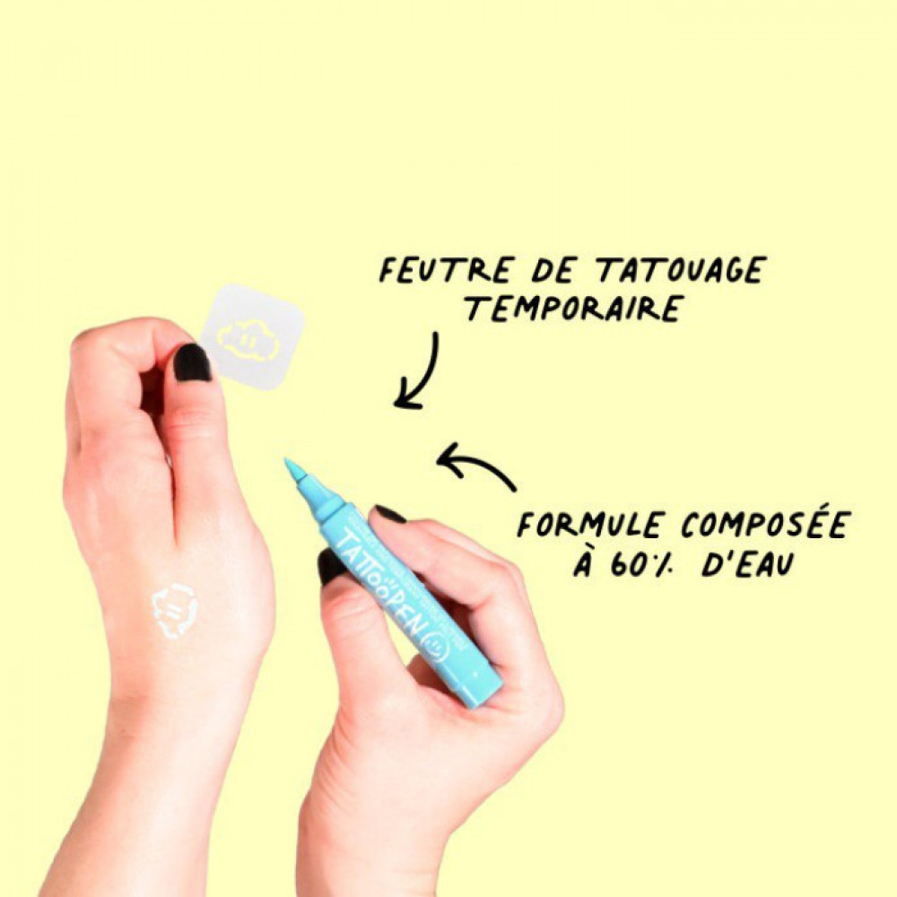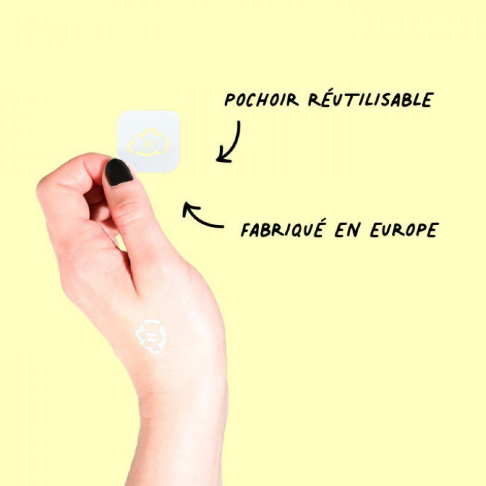 Known for his famous blue sailor and his blond streak, Jo Little is a French artist who transports us into his urban and Parisian universe. Find in this box of temporary tattoo pens in limited edition, the icons of the City of Light and two Tattoopen essential to achieve beautiful tattoos: a blue and a yellow. The 8 reusable stencils are drawing aids that perfectly complement this set of two Tattoopen. They allow you to get inspired, to get started and to become an artist yourself. Children from three years of age, as well as older children, can have fun tattooing the artist's symbols on their bodies in an ephemeral way. Take one of the colors of the box, position a stencil on skin and follow the lines. The drawing is revealed and it is possible to continue to create around it according to your imagination. Everything is possible ! For children aged 3 and above