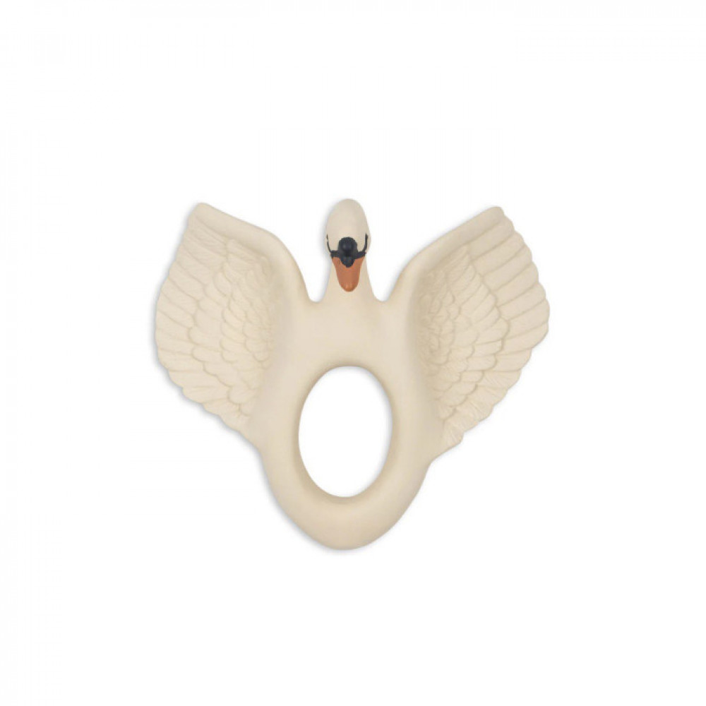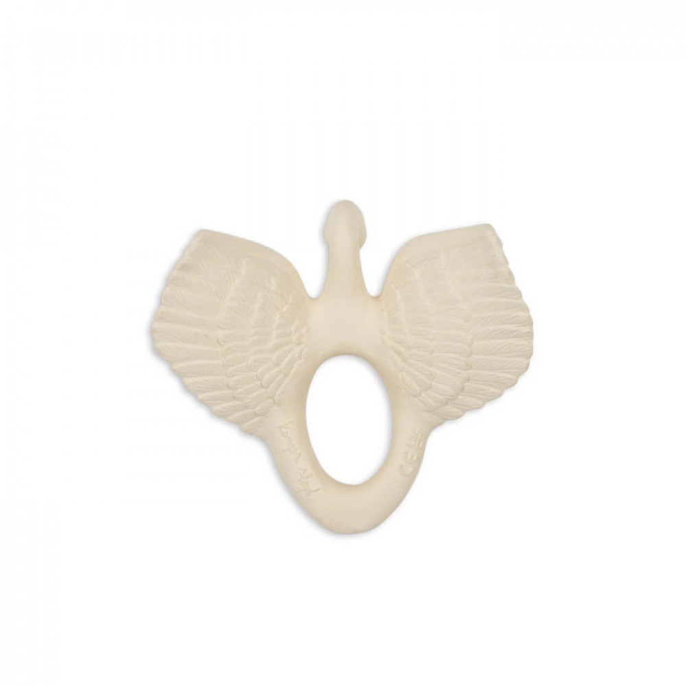 Teether made from 100 percent silicone, safe for babies to chew on. The textured surface is fun for the baby to explore while soothing gums at teething stage. Designed with an easy-grasp ring handle with spin feature.